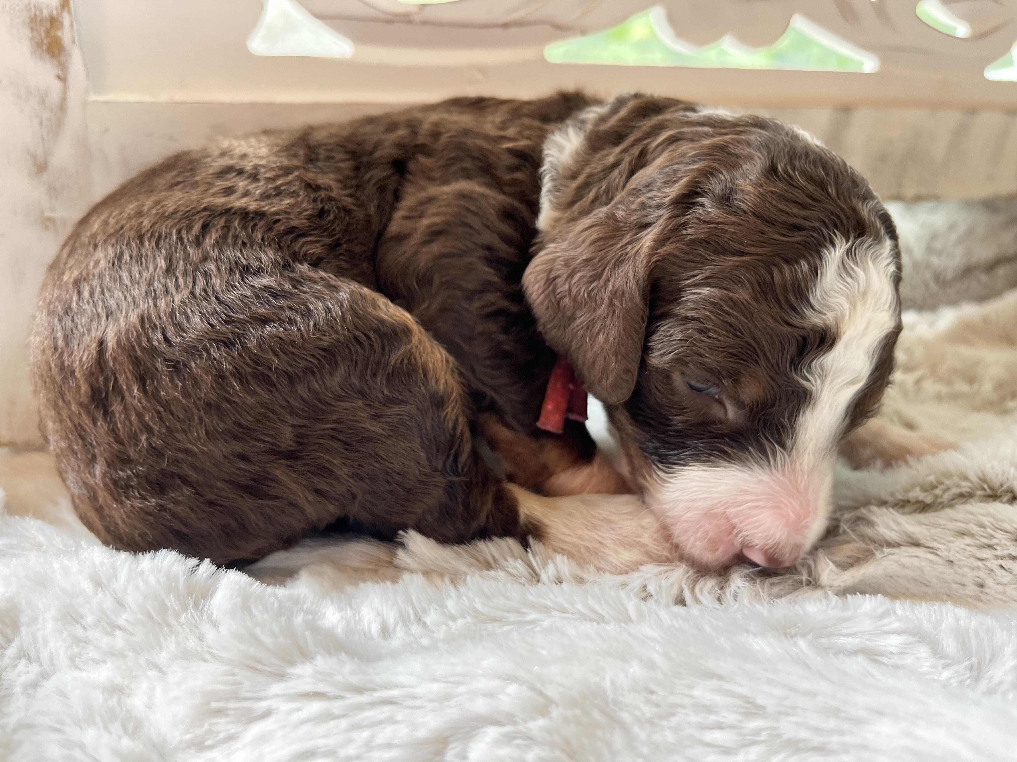 I'm Ramona B., the breeder behind Lovey Dovey Bernedoodles located in La Porte, IN. All of our puppies are bred, raised, and loved in our living room to produce happy, healthy pets for those seeking the best family companion! We are a small, family-run breeding program focusing on quality care and good health. Our puppies are the perfect loving and loyal companions!