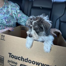 We are so very happy with our experience with Brenda and Lovey Schnauzers. She was quick to answer my questions and provide lots of pictures and videos when picking out our little girl. I was also very pleased that Brenda was able to meet halfway between our destinations during pick up, and using good dog as a platform was extremely smooth and made it easy to pay. I have had 2 male schnauzers, so this is our first time getting a girl and we are over the moon about her. You can tell she has been loved on and is already so well-mannered. I would totally use Brenda again if I am ever looking for another dog!