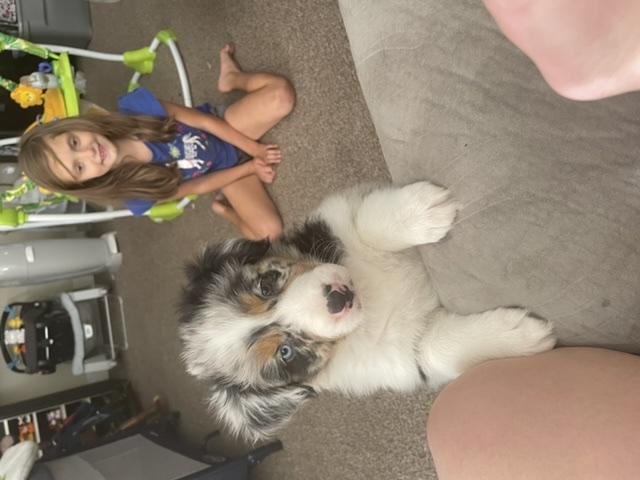 Our puppies include black, red merle, and blue merle. Colors will vary depending on the parent dogs.