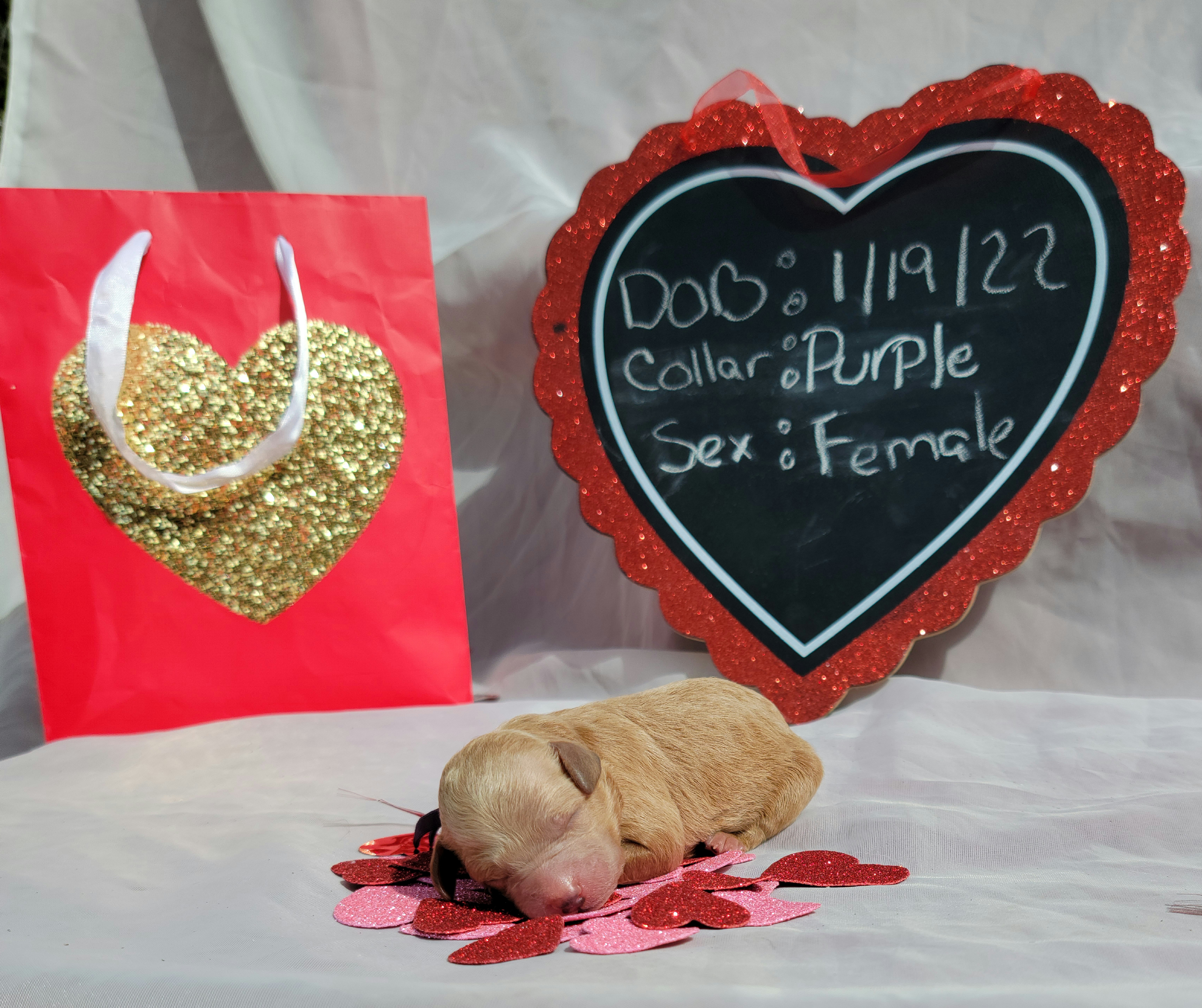 Our Goldendoodle puppies include cream, apricot, red, chocolate, black, phantom, merle, and parti. Double Doodle puppies are parti. Colors will vary depending on the parent dogs.