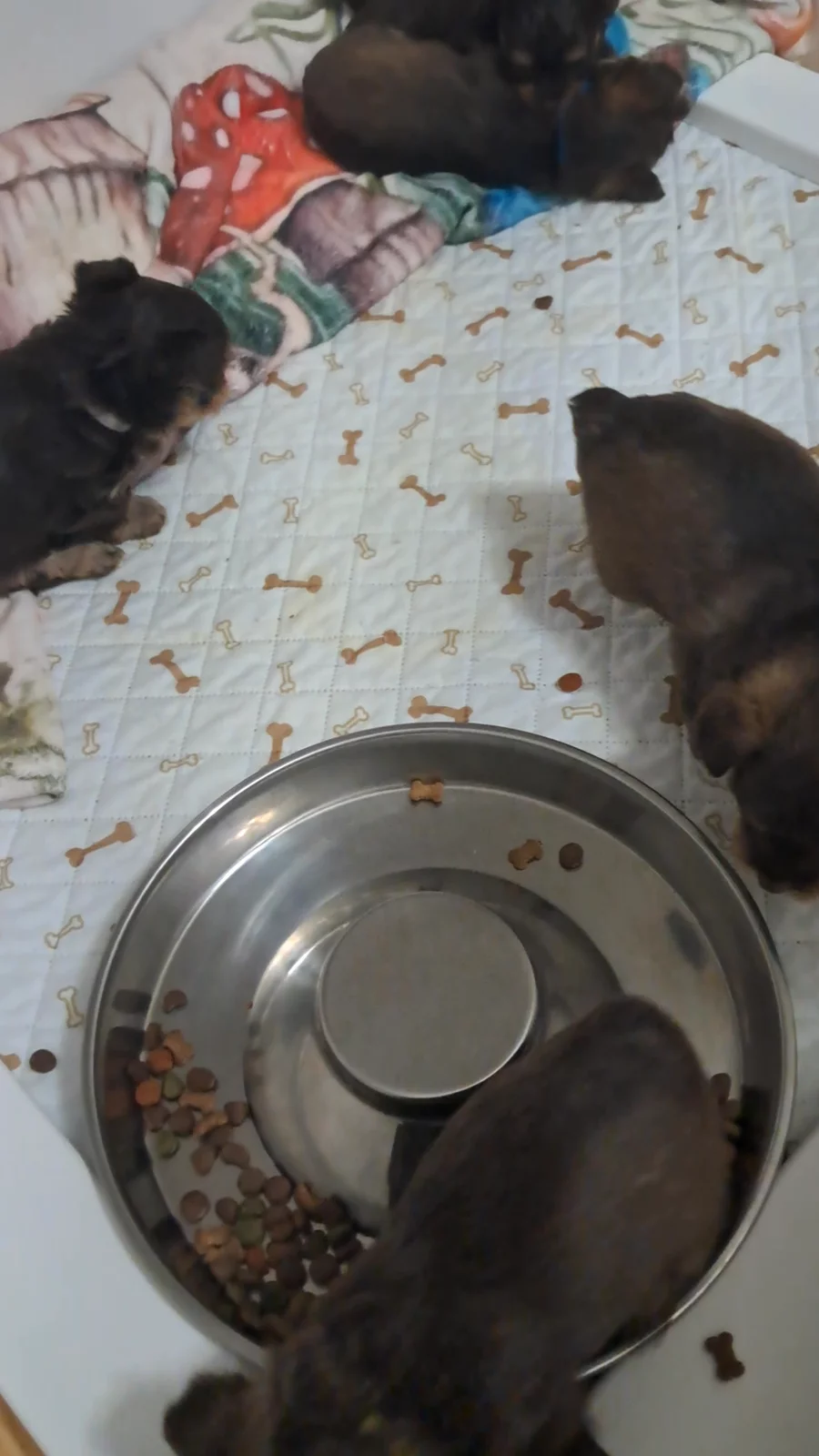 We are loving playing together! We are learning to eat our kibble! Watch little Girl Yellow! She's a doll!
