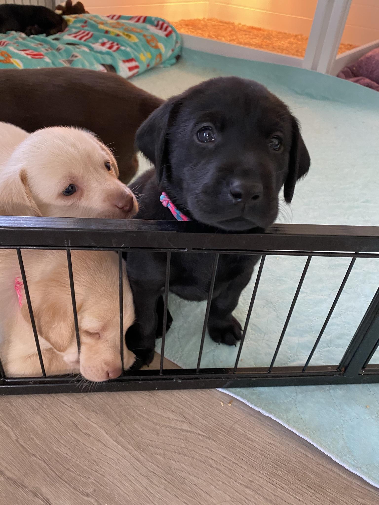 Our Dilute Retriever puppies include silver, charcoal, yellow, black, chocolate, and champagne. Labrador Retriever puppies include black, chocolate, and yellow. Colors will vary depending on the parent dogs.