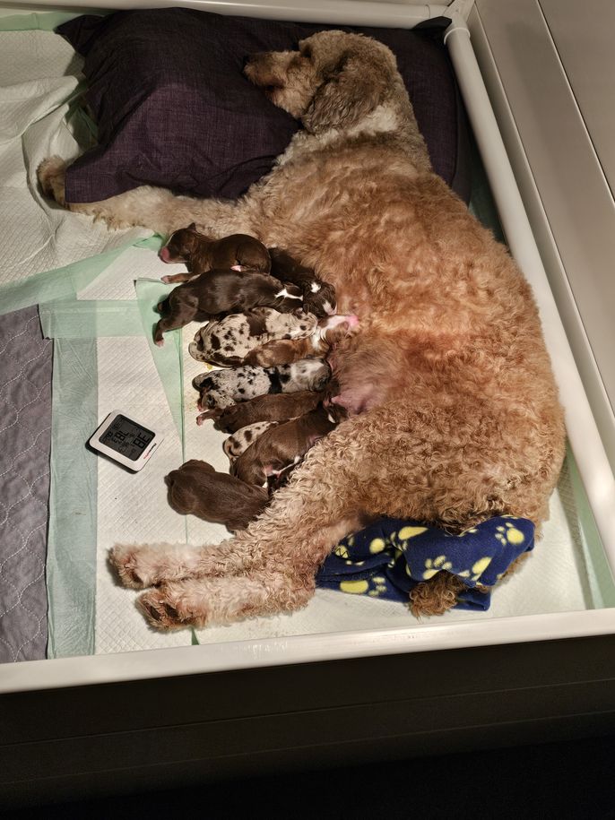I had a great experience with this breeder!! Very good at communicating with us with pictures and videos of the puppies before we picked him up. She has the puppies kept inside the home in a little puppy nursery which was very clean and nice! She sent us with a bag of many things we might need for our drive home. Our boy, Chip, is so well-behaved and sweet. He is great with other dogs and small children. He is so smart and very easy to train. Such a great experience and already thinking about getting puppy #2 from here!! 😊
