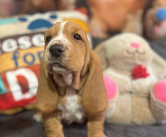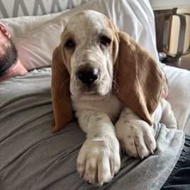 Leigh has been amazing to work with! This was my second time getting a puppy through a breeder, and I can confidently say Leigh is the kind of responsible, caring breeder I highly recommend. My husband and I lost our first Basset Hound in July — she was our first love, adopted from a shelter at one year old. Losing her was heartbreaking, and our home felt so quiet without that special Basset personality. Since we knew the breed we wanted, I started researching again. I strongly believe that if you’re not adopting through a shelter, the only way to go is through a breeder who is ethical, responsible, and puts their puppies in the best position to be healthy and well-adjusted. Leigh is exactly that. From the very first inquiry, she was prompt, supportive, and transparent. Since we’re in Chicago, I asked about safe and affordable transport options. Leigh connected us with Betsy, a wonderful flight nanny, and the process was seamless and reasonably priced. Pick-up at the airport was easy, and our new puppy (formerly Missy, now Miss Pamela) bonded with me right away. She came home with no anxiety, was nearly potty trained, and had clearly been given the best start possible. Leigh even spent 40 minutes on the phone with me after we got home, walking me through Pamela’s care, routine, and training tips — including the brilliant idea of connecting a crate to a playpen with puppy pads. It’s been a lifesaver with potty training, especially since Bassets can be stubborn. From day one, Pamela has been able to settle herself at bedtime and sleep through the night, and she’s been social, happy, and playful with everyone (including our Corgi). What stands out most is that Leigh’s support doesn’t end once you bring your puppy home. She stays in touch and is always just a phone call away for advice. Having worked with another breeder in the past, I can say from experience that Leigh goes above and beyond. We couldn’t be happier and are so grateful for Pamela — and for Leigh making this experience such a positive one.