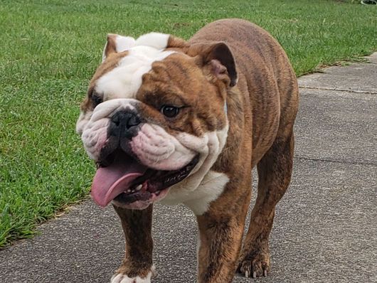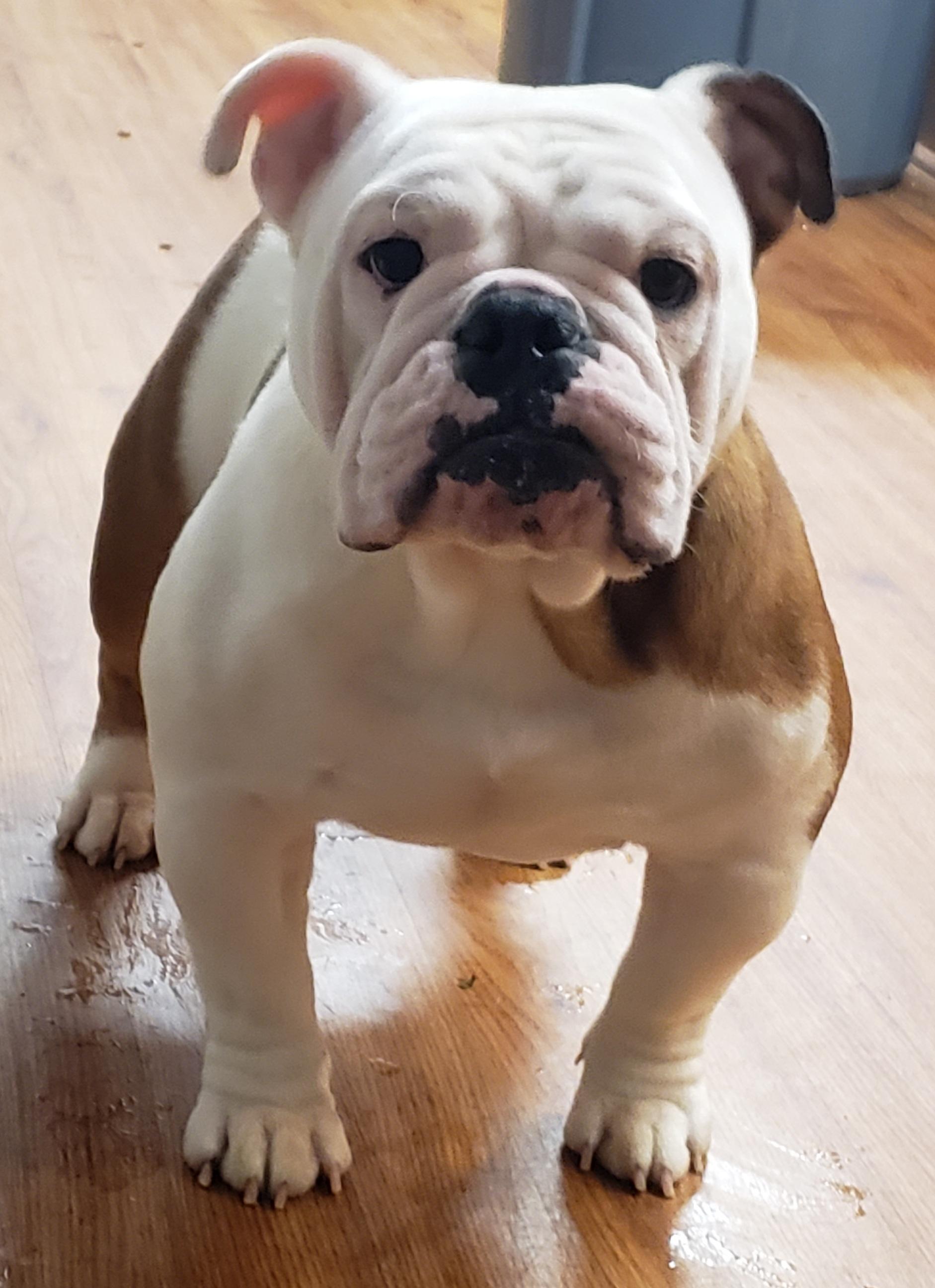 Opal is a female Bulldog about 3 years old. Carefully selected as a great representative of her breed, Emily decided to make her part of their program. Emily has passed Good Dog’s screening process, which involved a review of their breeding practices, environment, and the mental and physical health of their dogs.