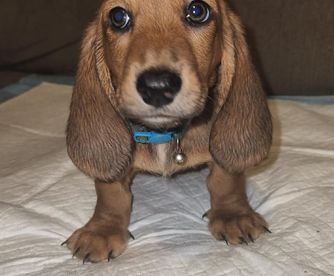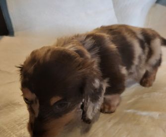 Dachshund puppies include wirehaired and longhaired coat varieties. Coat types may vary depending on the parent dogs.