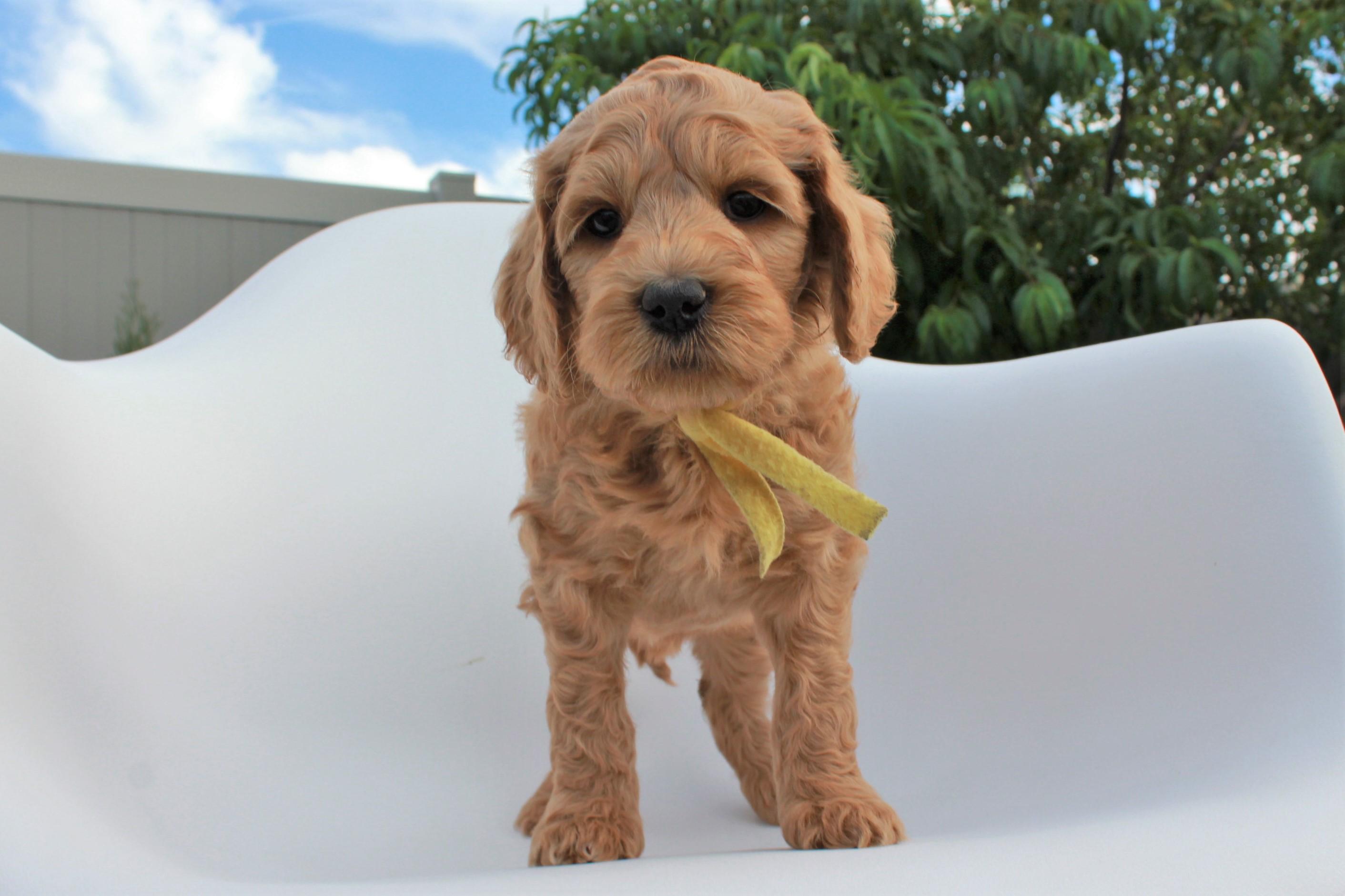 Chewy is a male Australian Labradoodle. Carefully selected as a great representative of his breed, Emily decided to make him part of their program. Emily has passed Good Dog’s screening process, which involved a review of their breeding practices, environment, and the mental and physical health of their dogs.