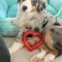 Our Toy Australian Shepherd puppies include red, black, blue merle, and red merle. Miniature Australian Shepherd puppies include blue merle, red merle, red, and black. Colors will vary depending on the parent dogs.