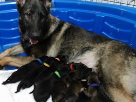 Our German Shepherd puppies include plush, long, and stock coat varieties. Coat types may vary depending on the parent dogs.