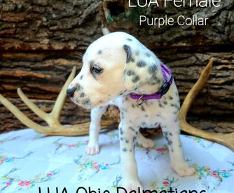 I'm Maribeth B., the breeder behind LUA Ohio Dalmatians located in Sidney, OH. I believe there is no better breed than Dalmatians. They are so energetic and loving. I want to spread the joy they bring with others. I love spending my life with my dogs and being able to assist in breeding to the standard. Seeing the joy these pups bring to others is truly priceless. A little about our LUA female "Ziva". She is Baer tested along with LUA tested with results being N/Hu. She has an impressive bloodline. With Grand Champion Platinum twice over, grand bloodline sire, Kastle's Go Speed Racer. Please Google this amazing sire. Thanks for viewing, Maribeth Sian Bolcavage.