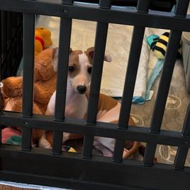 April is the best! Throughout the whole process she was super informative and friendly. Jillian, my partner, and I were informed of Fletcher's upbringing of the first 2-3 months. April provided us with the information of what Fletcher ate, his cleaning products, the blanket with the scent of his mom/littermates. She set us up for success in welcoming Fletcher into his new home and begin his training. April and I will be keeping in touch throughout Fletcher's upbringing and we look forward to keeping her in the loop and having possible future playdates with Dino, one of Fletcher's litter mates!