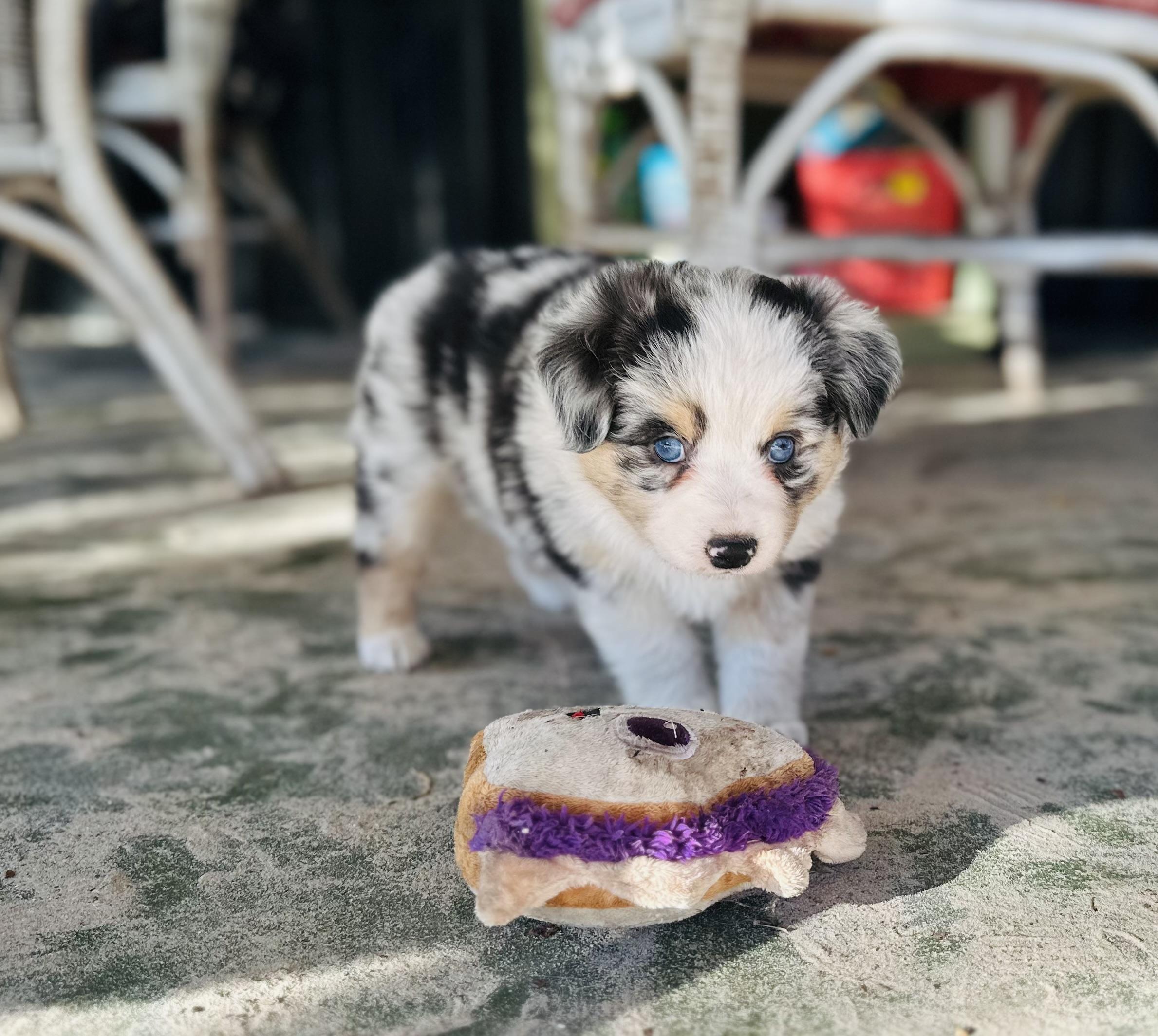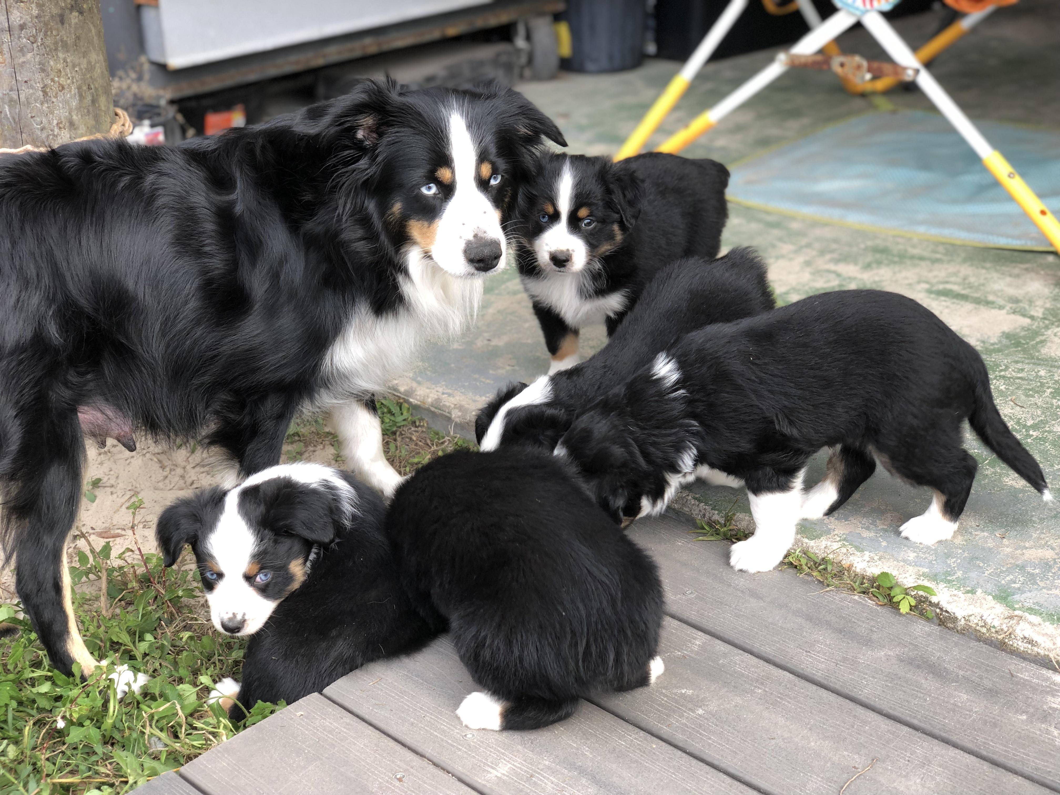 Our puppies include blue merle, red merle, red, and black. Colors will vary depending on the parent dogs.