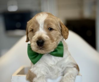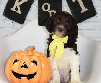 “All pet pups are placed on a strict contract that owners can review prior to placing their reservation. Pups will have their first round of vaccines, a full physical. All will be pee pad trained with basic crate training when they come home. Owners choose their pup in order of reservation. We offer two levels of advanced training for families that would like a pup that has training basics. We call it Puppy Preschool for puppies up to 16 weeks of age, and Puppy Kindergarten, where the pup spends time with a professional trainer and comes to you at 5-6 months of age. The price of a Lucky Dood is $3500. We give a $500 discount to those families that purchase a second dog from us after the first dog has turned one year old. After completion of our preference form, we schedule an interview, contract review, then place a $500 deposit to reserve, with an installment of $1000 due at 2 weeks of age. the balance is due after you select your pup at approximately 7 1/2 weeks.”