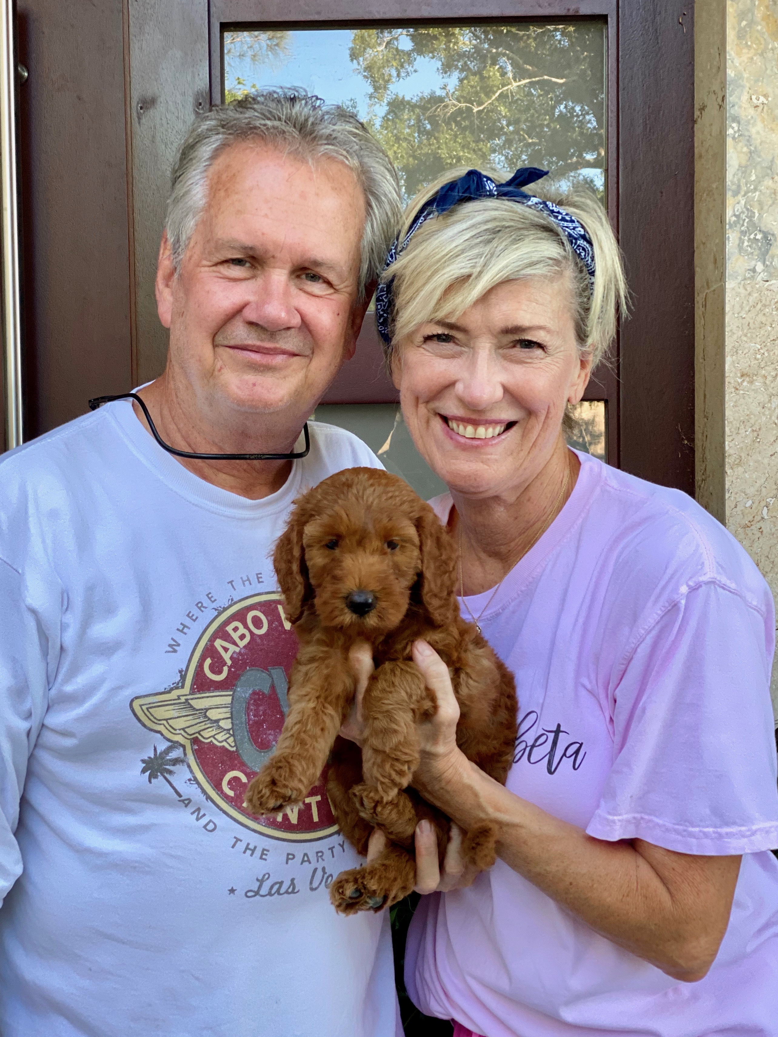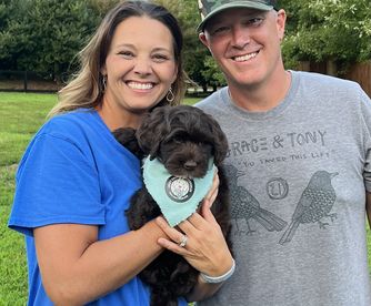 I'm Lori K., the breeder behind Lucky Country Labradoodles located in Wake Forest, NC. Hello! Thank you for allowing us to introduce ourselves! We are Lori and Steve Klingler, founders of Lucky Country Labradoodles. We invite you to review our program, and if you like what you see, to complete a preference form to start the journey on bringing home your new best friend. We like to say that we don’t sell puppies. We raise them! A bit about us: • We are based in Wake Forest, North Carolina. We have been breeding Australian Labradoodles since 2010. We breed a limited number of litters per year. We are the only ones that raise our pups; we do not have employees. We oversee every detail and are available throughout the life of your new companion. • Extensive testing of our breeding dogs is paramount. Our parents are health tested to the most stringent standards available. None of our dogs become parents until they have not only passed preliminary screening testing- which is most common with all associations, but also pass final structure testing at two years of age. We are proud to say that we have the OFA Canine Health information Center validation number before being bred- We value transparency with our testing and choose to provide ways for families to verify test results with independent organizations. • We hold the highest level of testing for both of our breed associations o The Australian Labradoodle Association of America- Platinum Paw o The Worldwide Australian Labradoodle Association- All Star health testing award that signifies the highest degree of testing within the ALAA. • Our criteria for parent selection: o Temperament- we use an independent evaluator to assess our pups these evaluators use well known and respected assessment programs including Volhard and the AviDog APET. Every family gets to review the notes and testing video prior to selecting their pup. o Genetic Health- Testing for our breeding dogs can be verified independently through Paw Print Pedigrees and Embark. We use this testing to help us determine our pairings to breed away from known genetic diseases for our parents. o Structure- We screen pups for preliminary testing, and before breeding, we complete final structure testing, considered to be the best practice for reputable programs. All structure testing can be independently verified through OFA.org. We choose to participate in the OFA Chic (Canine Health Information Center) program. The fees we pay contribute to independent research for canine health initiatives. o Size- We specialize in standard sized 45-85 pounds- (most of our dogs will be in the 55-pound range) multigenerational Australian Labradoodles that are from well-established lines. o Coat- A big reason the ALD is so popular is because of their low shedding coat. We specialize in a fleece coat, using available testing from our genetics lab to predict coat type. o Color- Through the genetic testing we do, we are able to predict colors and patterns for our pairings. Thank you for your time and consideration. We look forward to working with you to make your home the next “Home of the Lucky Dood”!