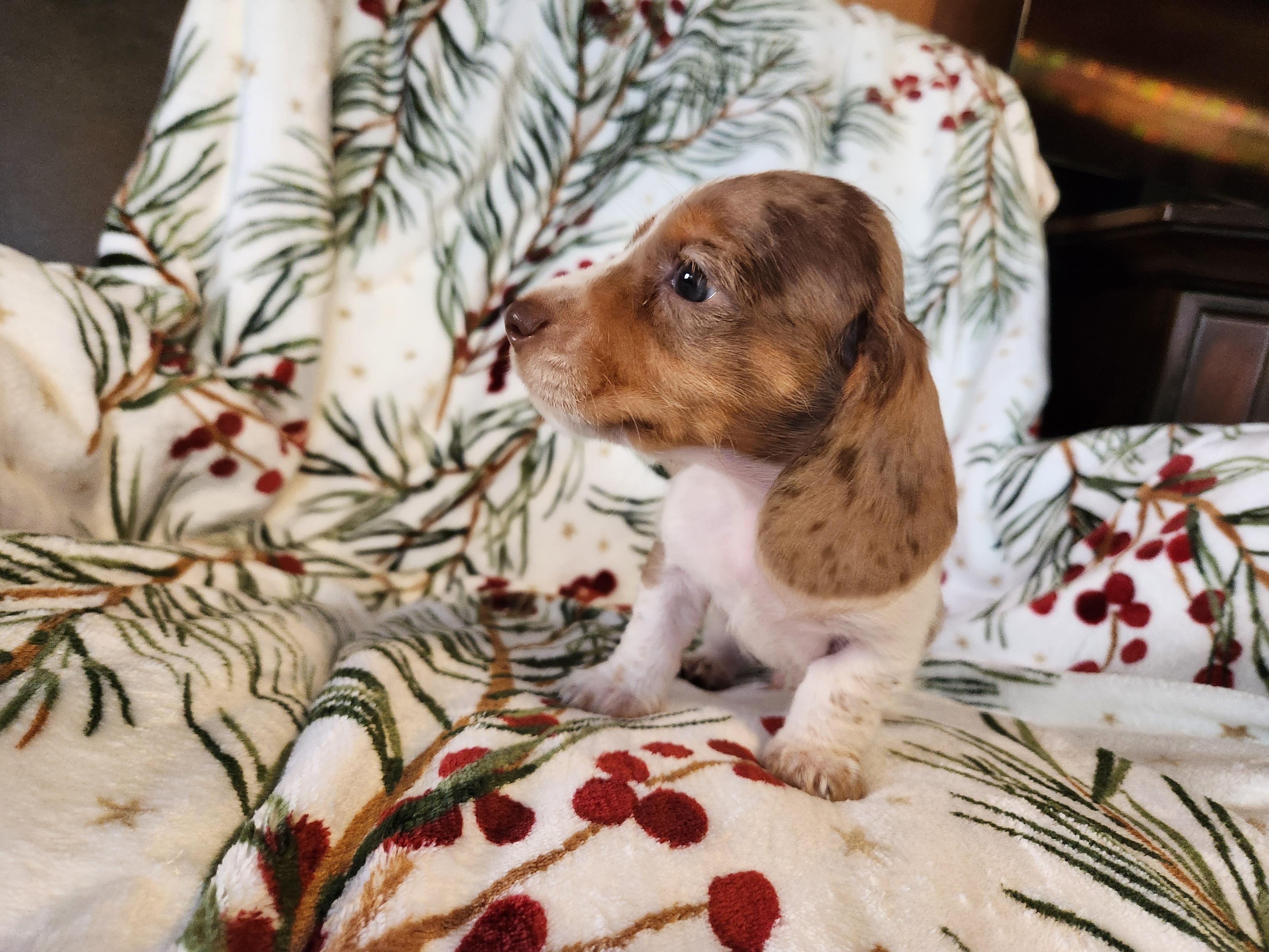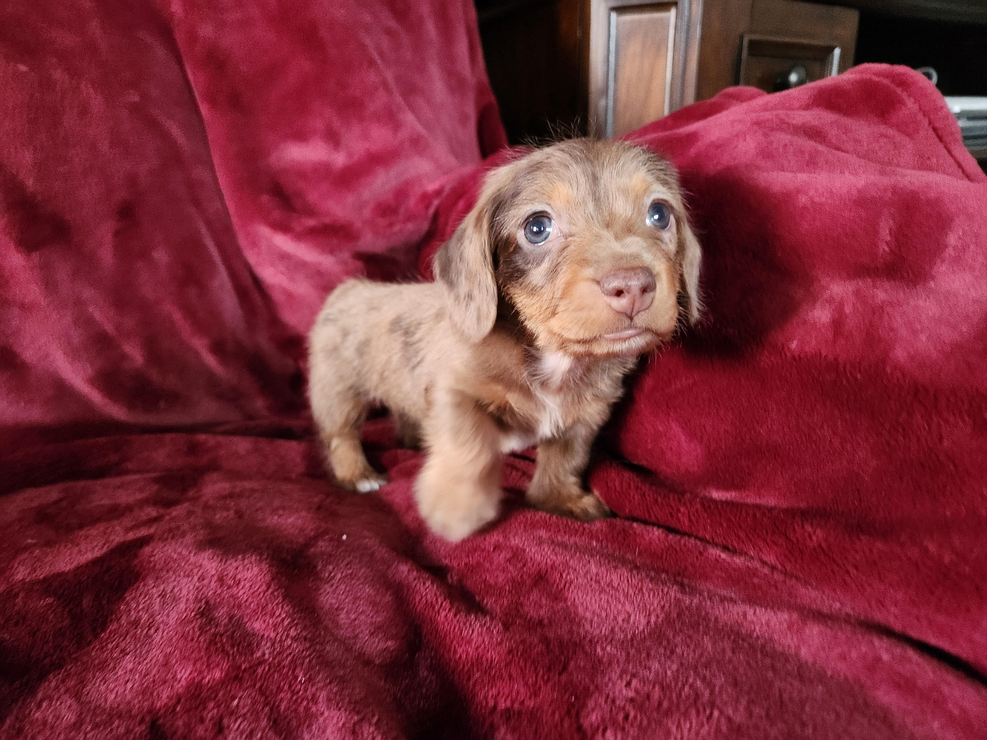 Lucky Dachshunds was great! Very communicative and friendly. She informed us of everything going on with our new puppy and sent pics weekly before pick up. She let us know what the puppy was eating and how much so the transition to her new home was seamless. I would 1000% recommend Lucky Dachshunds to anyone looking for a new puppy!