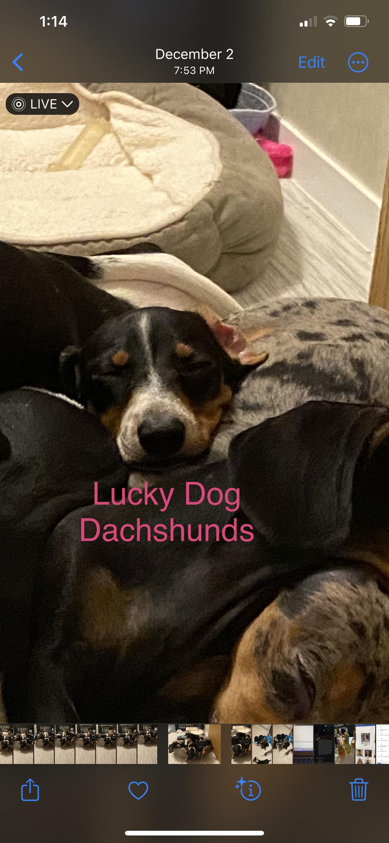 Tina was an absolute joy to work with, she is very knowledgeable and cares deeply for the well being of her doxies. I got my pup Frankie from her early March of 2025 and couldn’t be happier! He’s a happy healthy boy and I was given plenty of resources from Tina to get a good head start on my puppy journey. Can’t recommend her enough!!! 😁😁😁