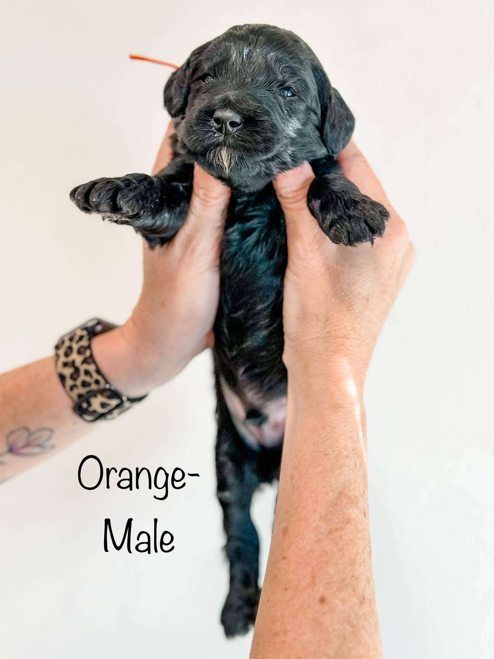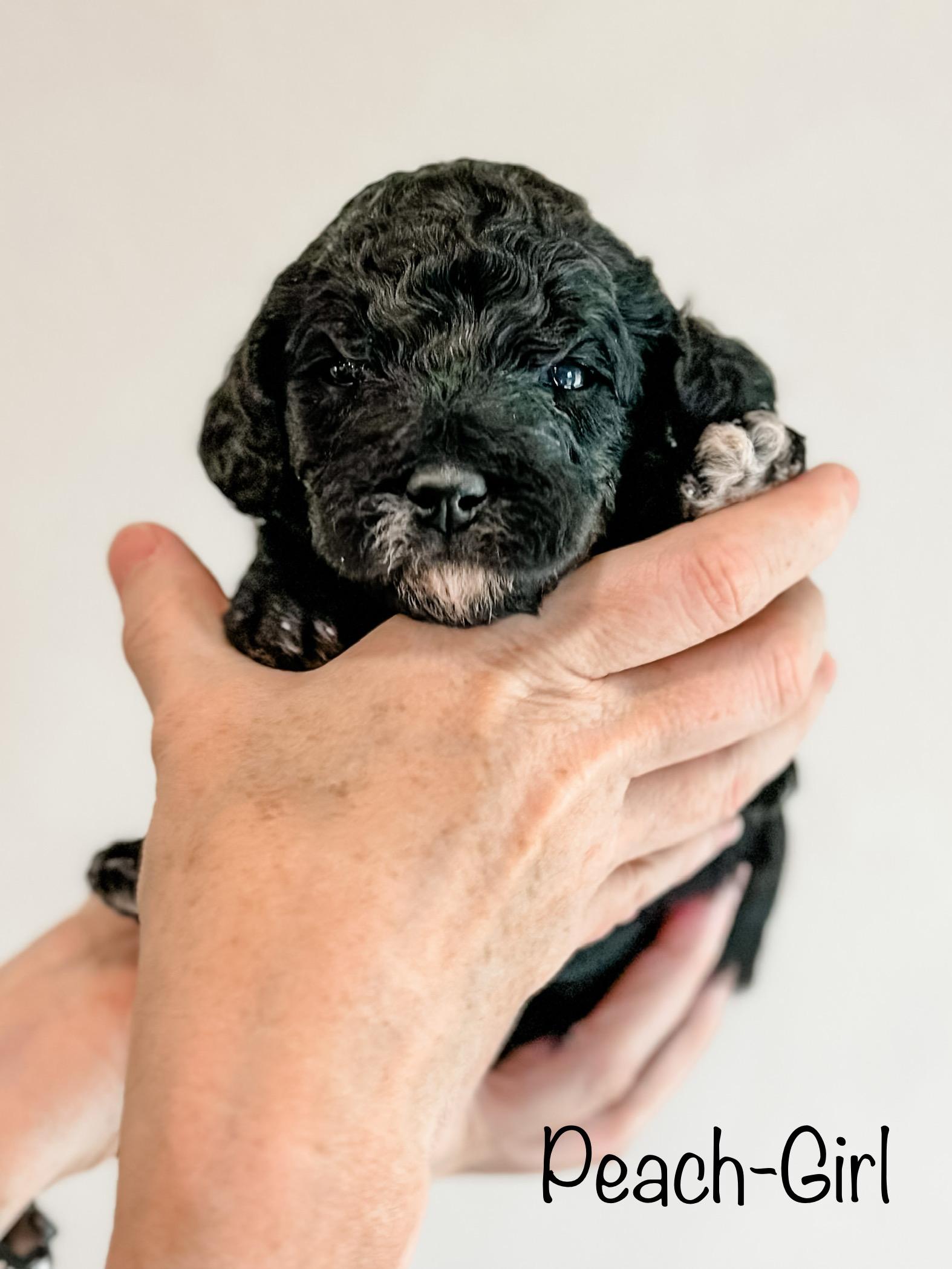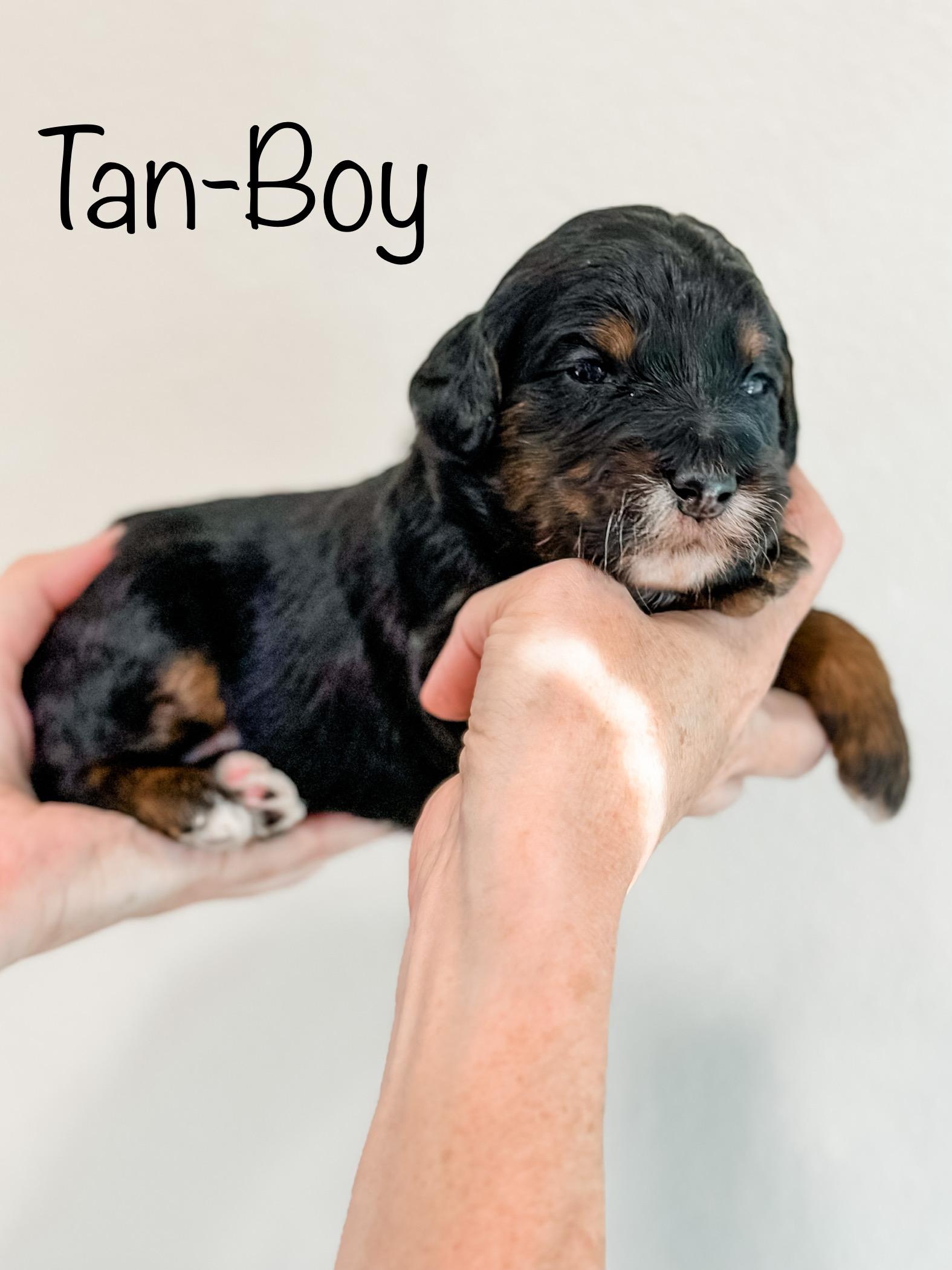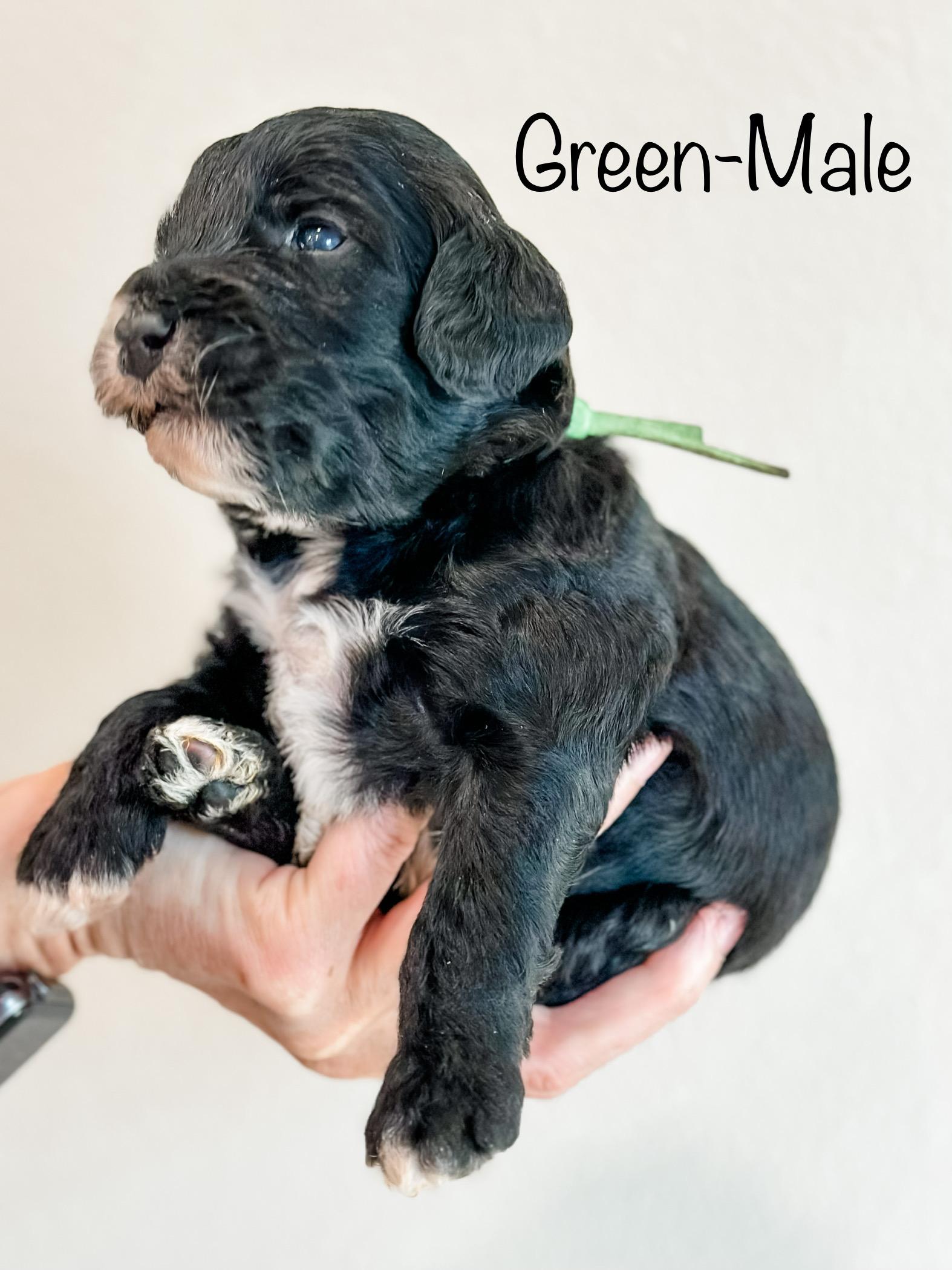 Our Goldendoodle puppies include apricot and red. Aussiedoodle puppies include brown and white, black phantom, black and white, and black tri-color. Colors will vary depending on the parent dogs.