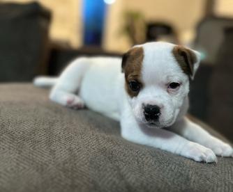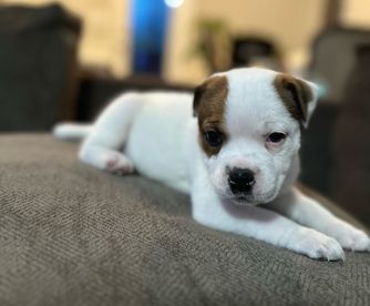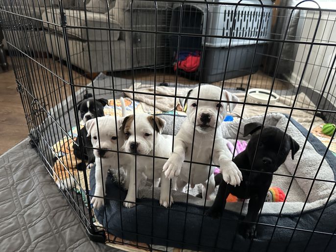 I'm Sharron A., the breeder behind Lucky Staffs located in Spring Hill, TN. We love this breed and the experience of having litters! Our mission is to raise pups that are set to become the best companions. Our puppies are raised with love in our home, and we strive to help each one grow up with confidence so they are ready to thrive with their new families. They are affectionate, intelligent, and cute as can be!