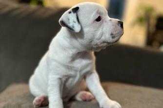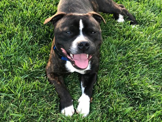 Diesel is a male Staffordshire Bull Terrier. Carefully selected as a great representative of his breed, Sharron decided to make him part of their program. Sharron has passed Good Dog’s screening process, which involved a review of their breeding practices, environment, and the mental and physical health of their dogs.
