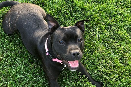 Maggie is a female Staffordshire Bull Terrier. Carefully selected as a great representative of her breed, Sharron decided to make her part of their program. Sharron has passed Good Dog’s screening process, which involved a review of their breeding practices, environment, and the mental and physical health of their dogs.