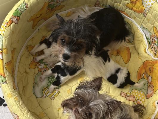 Chloe just loves her babies. When she isn’t take care of them she is just chill. Her face is super cute and is a health AKC registered Parti Yorkie. We love her in our program!