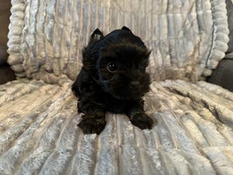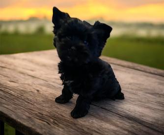 Lady is a beautiful KB black Yorkie with extreme quality lines. She has a soft silky coat and is all black. Health tested and guaranteed to produce quality Yorkies.