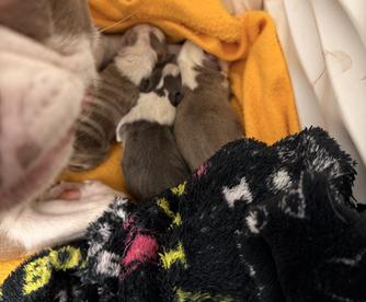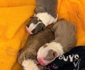 Our puppies include seal brindle and white, seal and white, black brindle and white, brindle and white, and black and white. Colors will vary depending on the parent dogs.