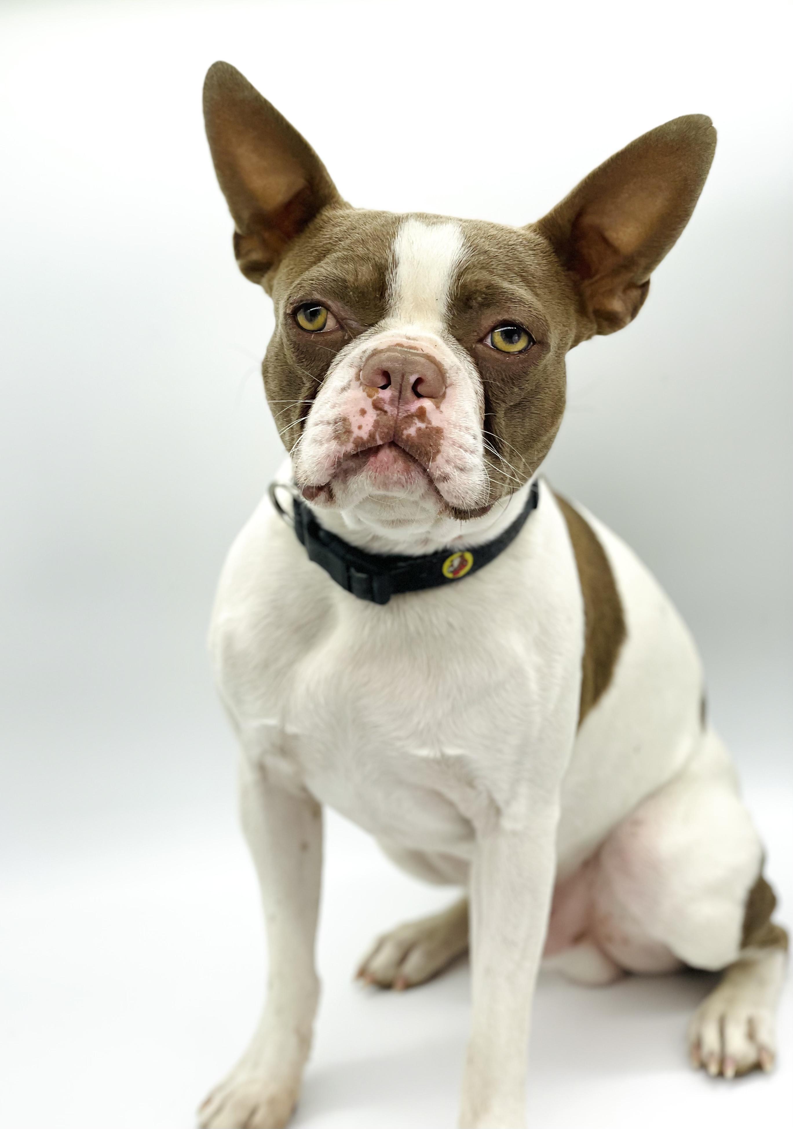 Percy is a female Boston Terrier. Carefully selected as a great representative of her breed, Risa decided to make her part of their program. Risa has passed Good Dog’s screening process, which involved a review of their breeding practices, environment, and the mental and physical health of their dogs.