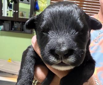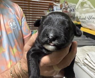 Our puppies are black and white. Colors will vary depending on the parent dogs.