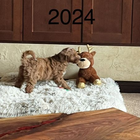 From a family: Bella Update, We love, love, love her! The reindeer you got her is still one of her favs! (Although it now has missing antlers 😂) We had a household full of guests for Christmas and she did soooooo good! Her temperament is wonderful and she adjusted so well with everyone (we had 30 people here)! She melts the hearts of everyone she meets. No one is a stranger… we love that about her! She had her first hair cut on Valentine’s Day and the groomer said she was amazed that she did so well especially because it was her first time! You did such a fantastic job nurturing her. I’ve never fallen in love faster and can’t imagine life without her. From the bottom of our hearts, we thank you for the wonderful care you did in raising her during her most impressionable days. Hope all is well with all of you! Pat Lulu and Flash on the head for us!