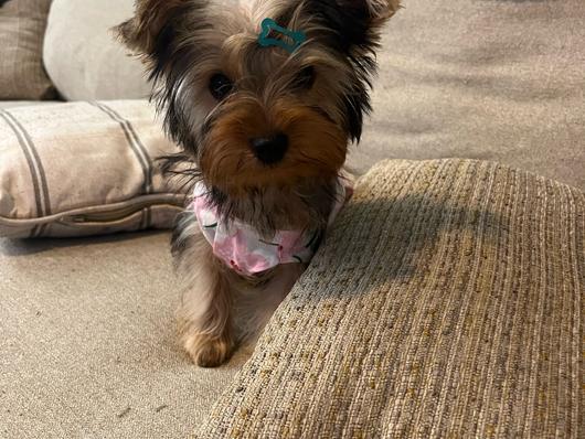 Remi is a female Yorkshire Terrier. Carefully selected as a great representative of her breed, The decided to make her part of their program. The has passed Good Dog’s screening process, which involved a review of their breeding practices, environment, and the mental and physical health of their dogs.