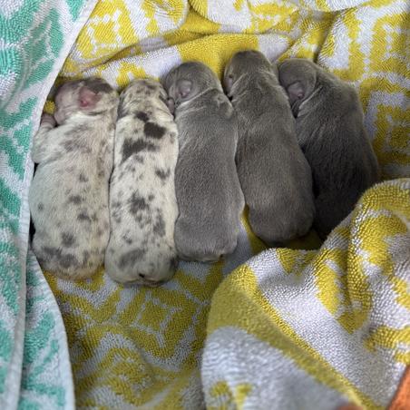 French bulldog litter born July 26th 4 girls 1 boy all lilac and lilac Merle