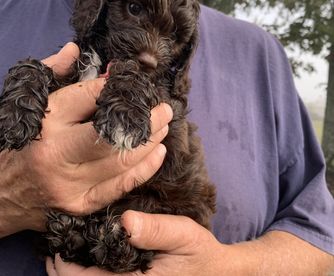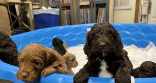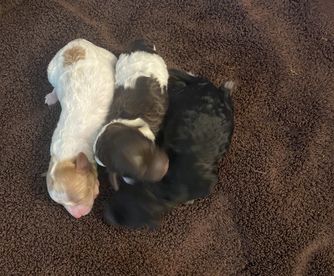 Our Poodle puppies include apricot, black, brown, parti, and brindle. Cockapoo puppies include golden, black, and brown white and tan. Colors will vary depending on the parent dogs.