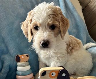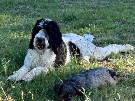 Our female doodle, Holly, is the best dog we have ever had the privilege to own. Our daughter owns the male, Snoop, who is just as sweet and easygoing as Holly. Both are excellent emotional support dogs. The two together have produced excellent puppies.