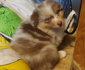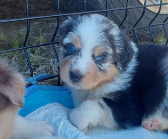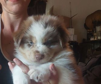 Our puppies include black, red merle, blue merle, and red. Colors will vary depending on the parent dogs.