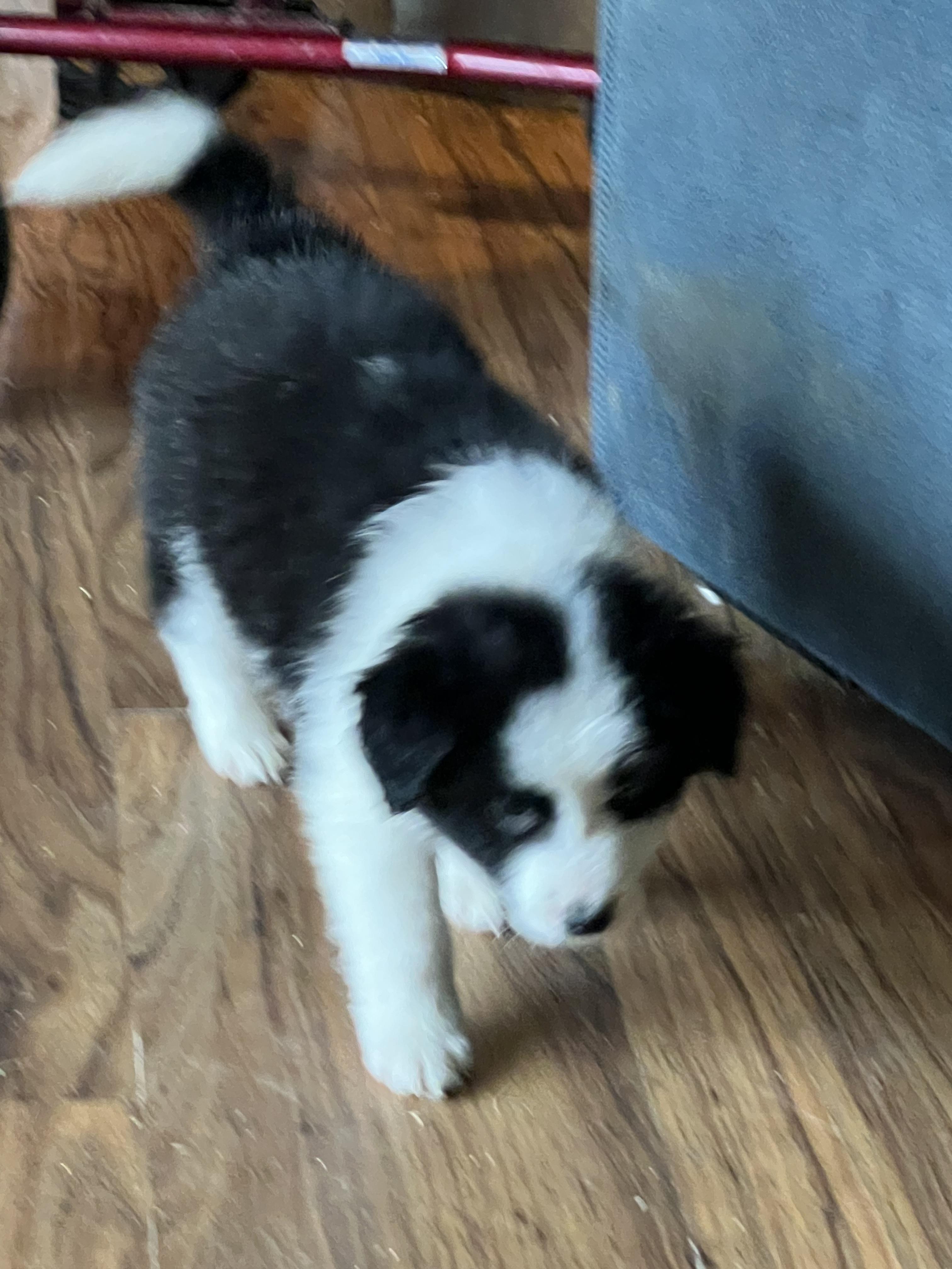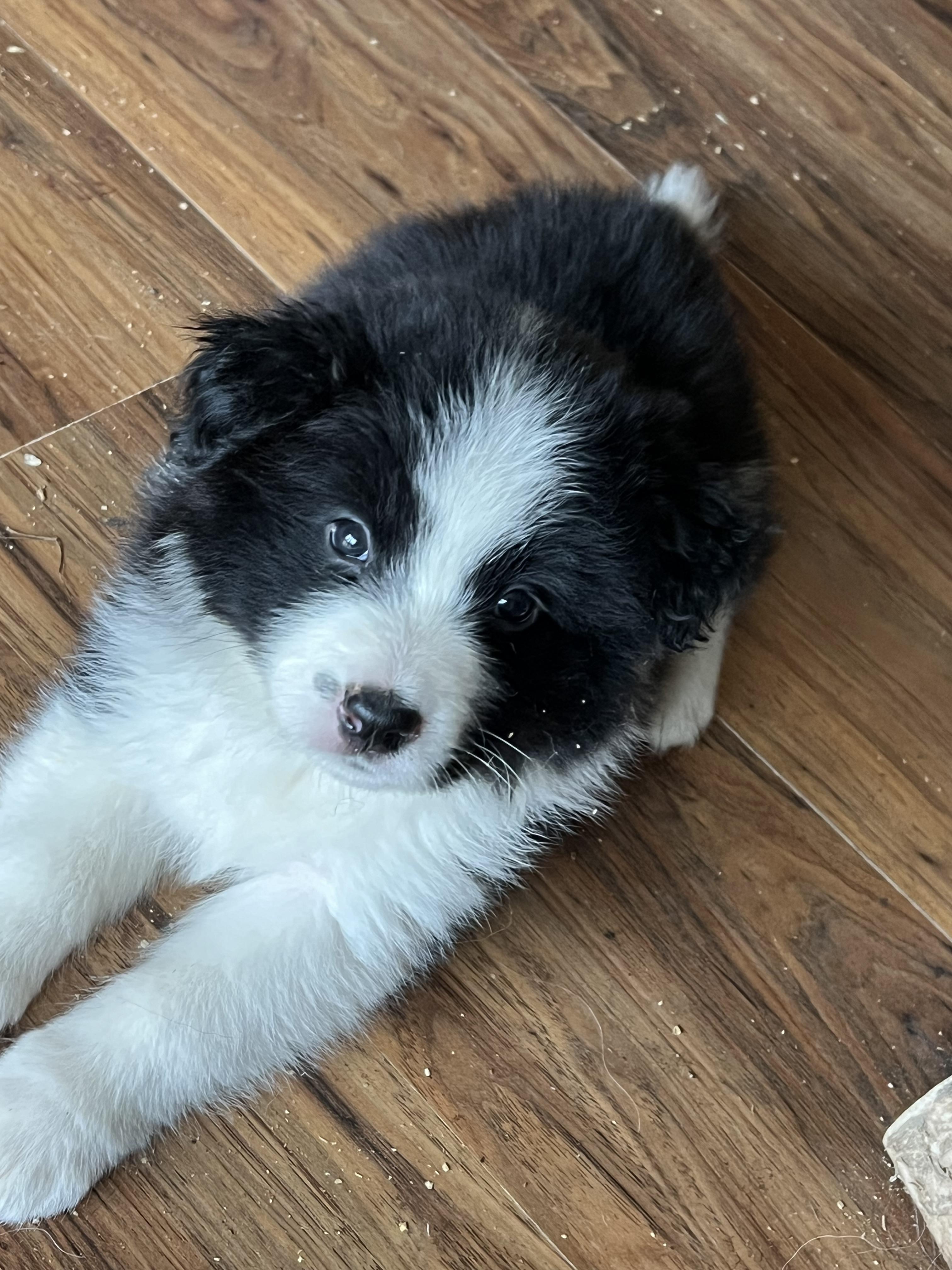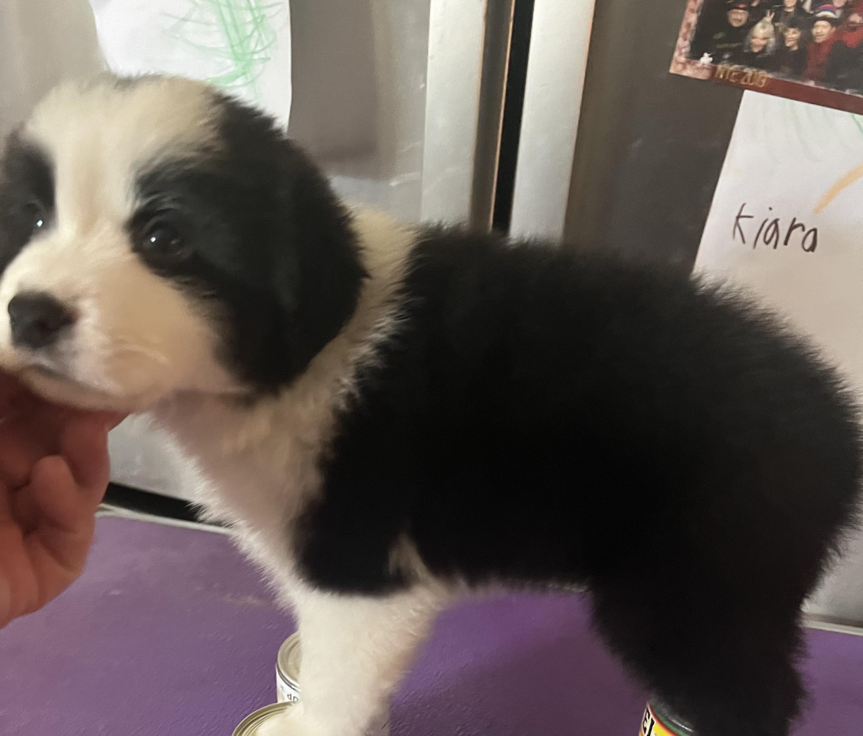 Our puppies are black and white. Colors will vary depending on the parent dogs.