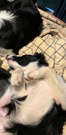 Naughty is the best tempered dog there is. He’s very smart biddable and a great partner. Loves to fetch and gets along with all other dogs and farm animals. Naughty has earned his AKC championship in conformation also earned his herding junior title. Cgcu