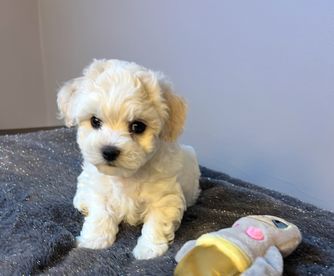 Kiki is a fun-loving, sweet-spirited girl who adores attention and connects with everyone she meets. She’s a true conversationalist, letting us know exactly when she wants something, and she’s been the most caring, attentive mother to her pups. Kiki is a joy to have around—full of personality, charm, and affection—making her little ones just as delightful as she is.