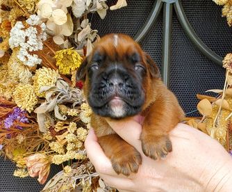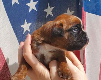 I'm Kelli S., the breeder behind Luna Ray Boxers located in Cove, OR. Luna Ray Boxers is committed to breeding boxers with European character traits and more specifically according to European standards. We are honest and dedicated to bettering the Boxer dog breed and provide pet lovers with the true companion they are looking for. We do everything we can to deliver you healthy puppies that are playful and can be easily trained at home.
