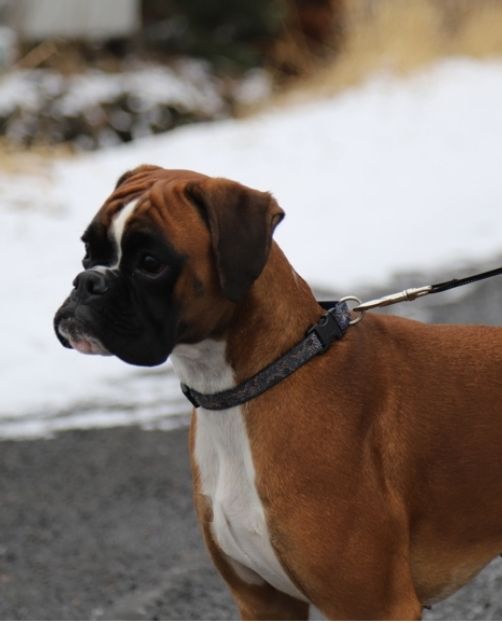 Mamba is a female Boxer. Carefully selected as a great representative of her breed, Kelli decided to make her part of their program. Kelli has passed Good Dog’s screening process, which involved a review of their breeding practices, environment, and the mental and physical health of their dogs.
