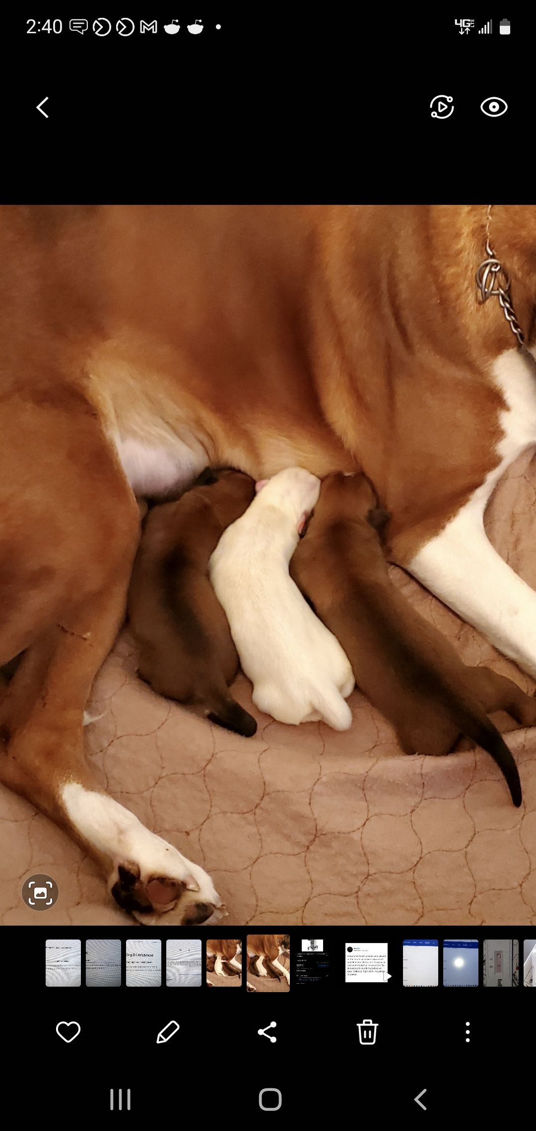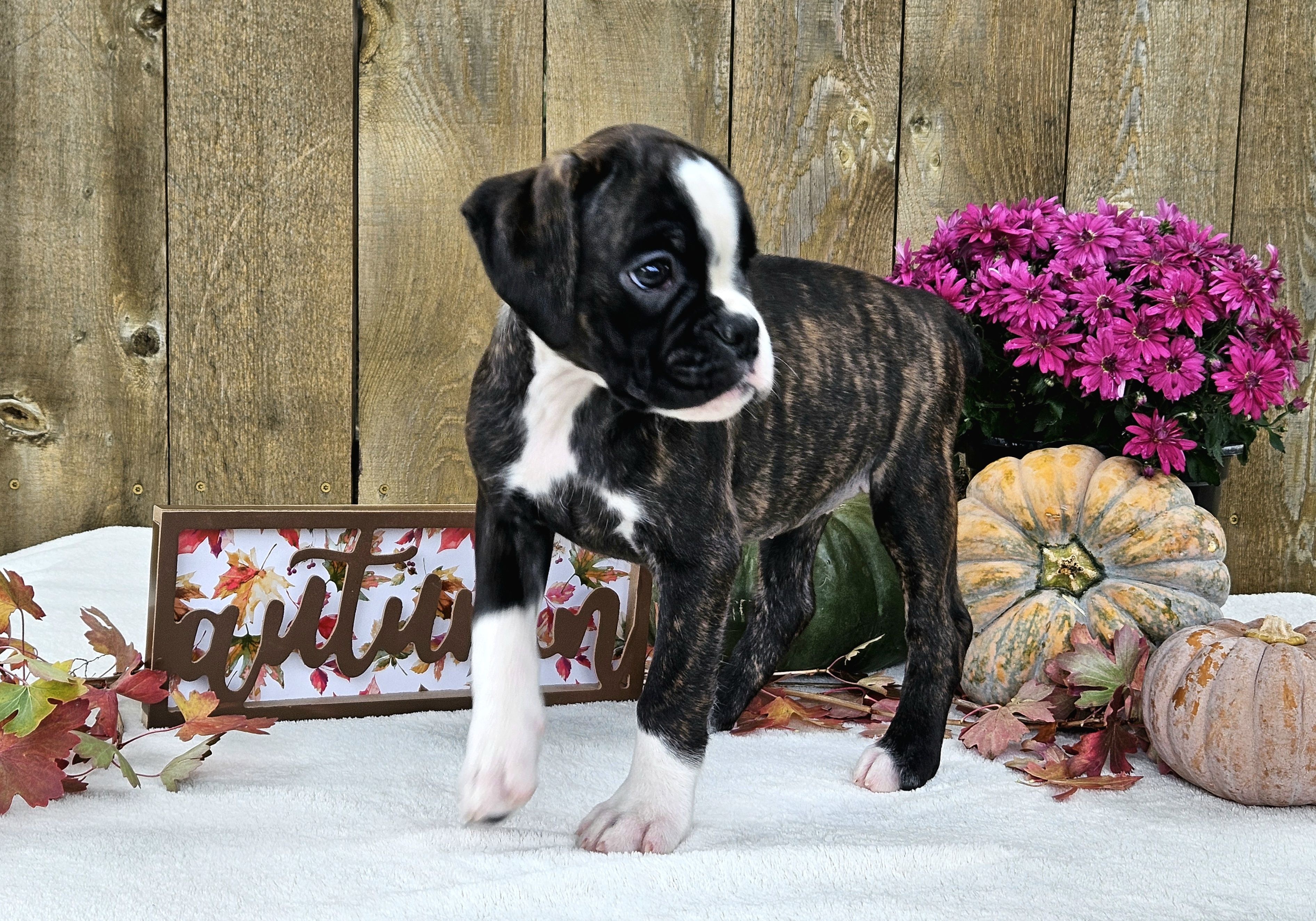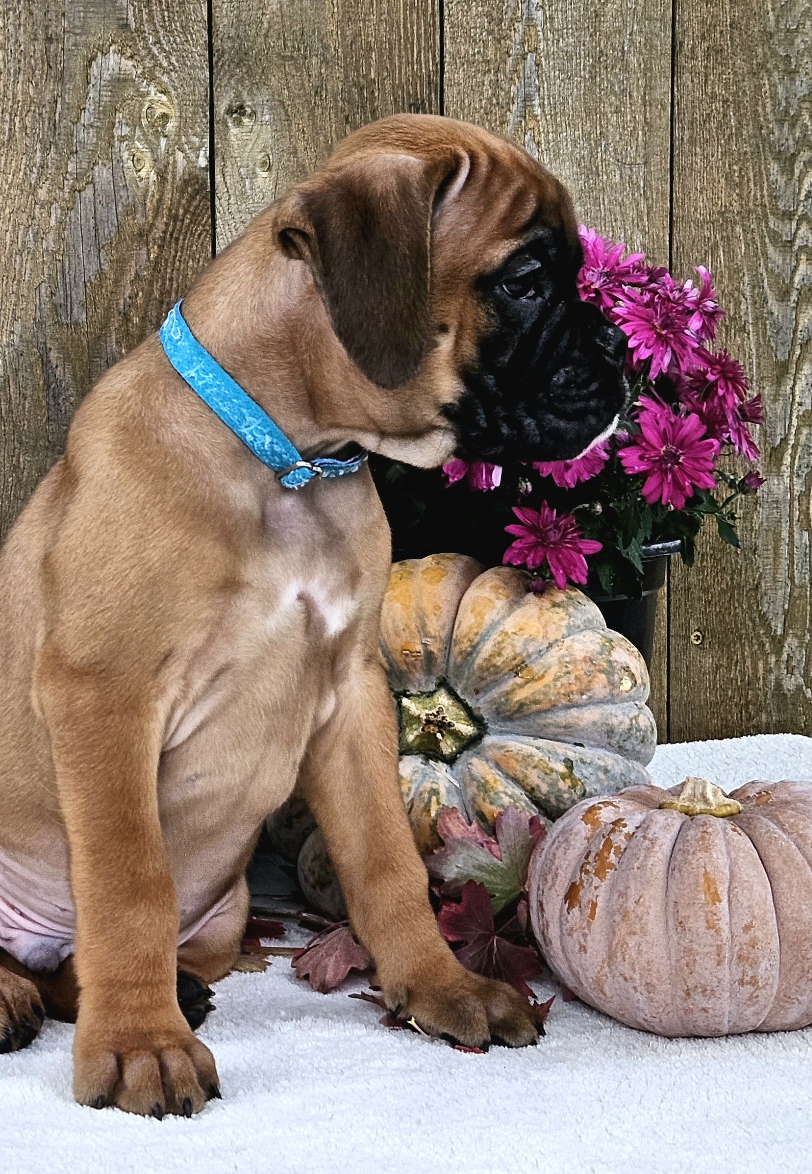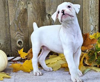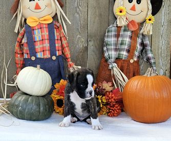 Our puppies include fawn, brindle, and white. Colors will vary depending on the parent dogs.
