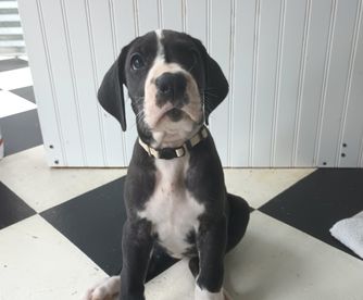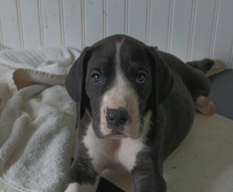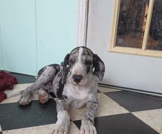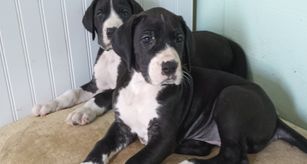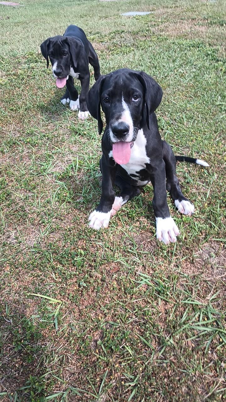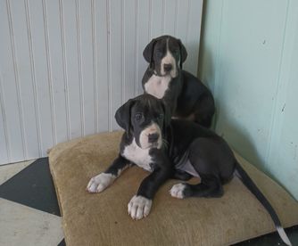 “Includes the vaccinations, deworming and health certificates. Our pups come from a championship bloodline on dads side and are AKC REGISTERED. if you seroius about having a dane its your lucky day ! We have a family health issue so we have reduced our 5 remaining black-and-white beauties to only $1000 each