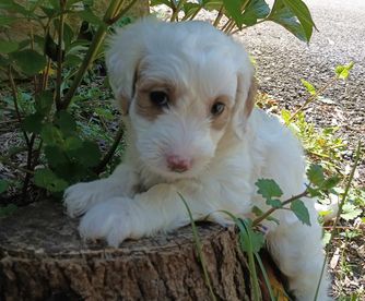 “Home raised pets. Mama & papa our beloved pets & fully genetically tested clear through Embark. 1-year health guarantee. Socialized & litter/pad training begun (crate training available). $550 deposit to reserve your puppy. You may do an in-home visit or via video chat.”