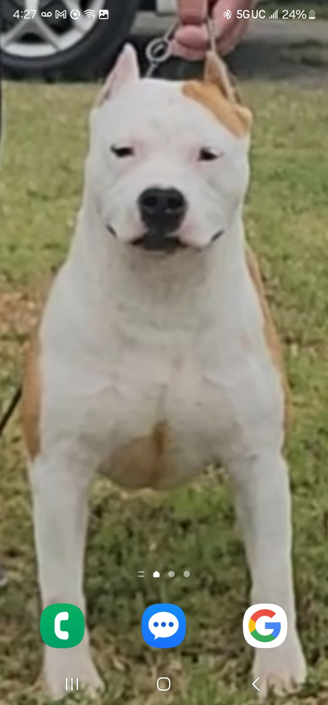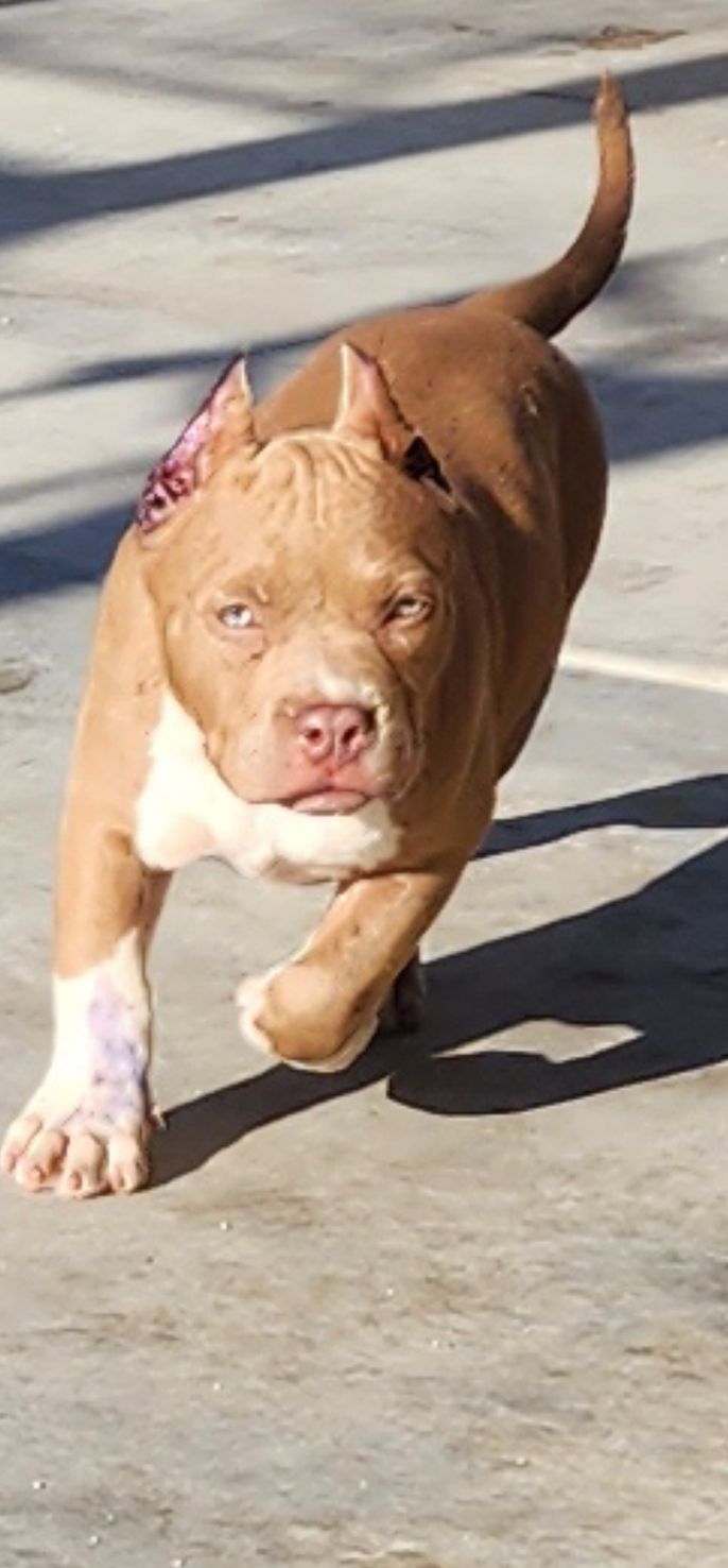 MIA is a female American Bully. Carefully selected as a great representative of her breed, George decided to make her part of their program. George has passed Good Dog’s screening process, which involved a review of their breeding practices, environment, and the mental and physical health of their dogs.