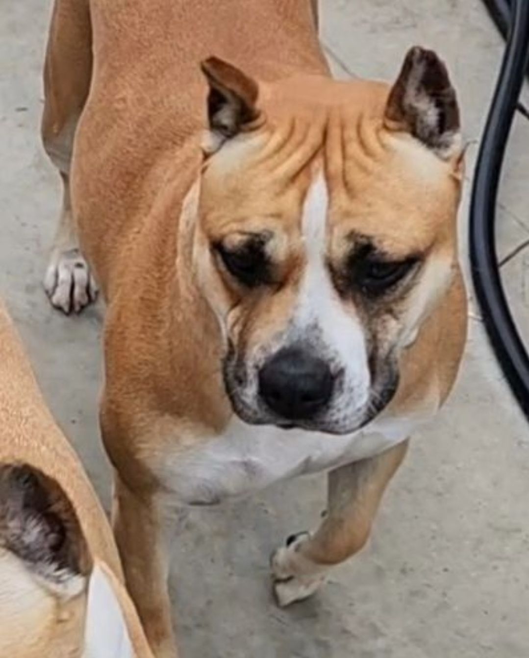 Honey is a female American Staffordshire Terrier. Carefully selected as a great representative of her breed, George decided to make her part of their program. George has passed Good Dog’s screening process, which involved a review of their breeding practices, environment, and the mental and physical health of their dogs.