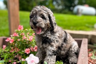 Our puppies include cream, apricot, chocolate, black, merle, and parti. Colors will vary depending on the parent dogs.