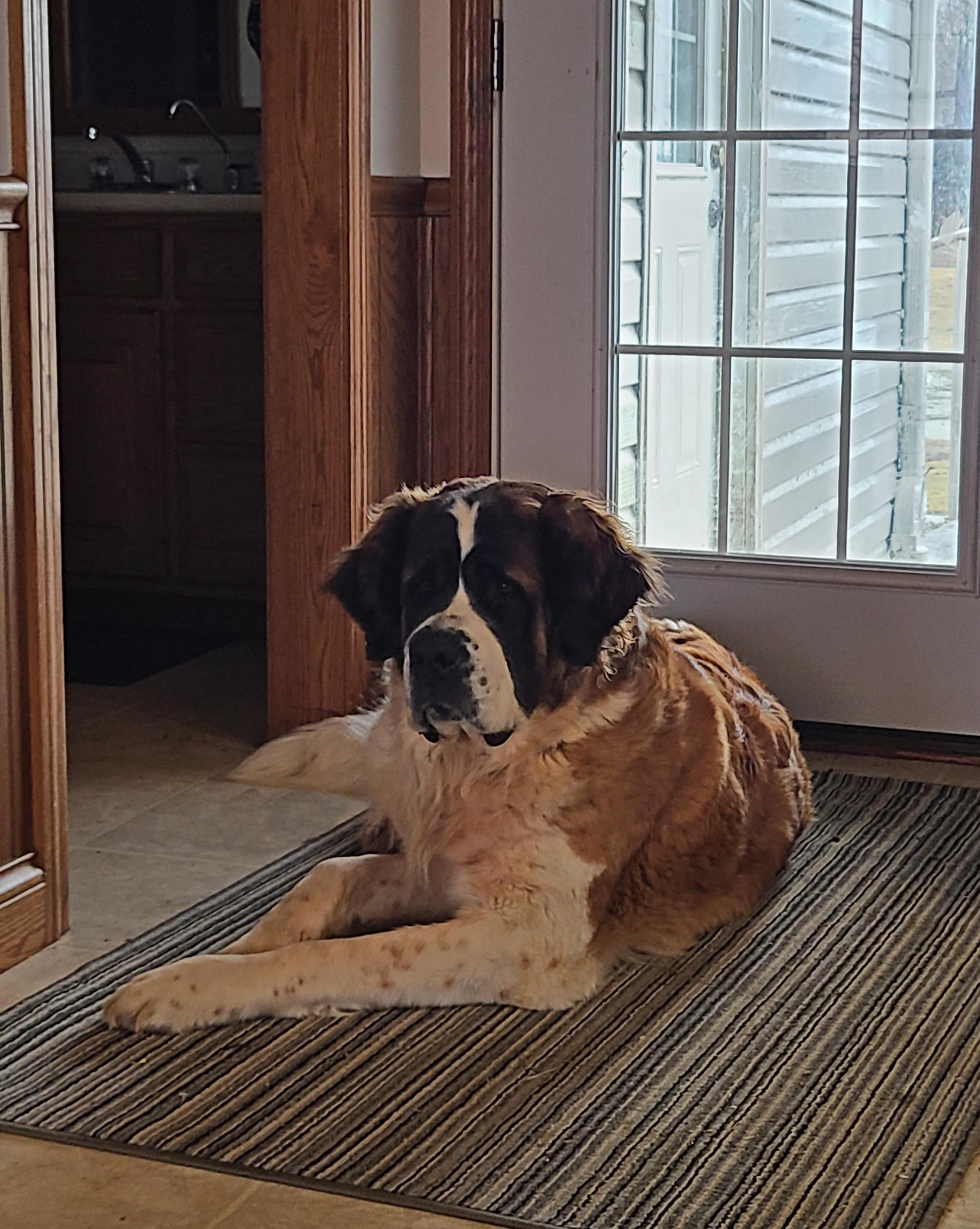 Carmel is a female Saint Bernard. Carefully selected as a great representative of her breed, Erin decided to make her part of their program. Erin has passed Good Dog’s screening process, which involved a review of their breeding practices, environment, and the mental and physical health of their dogs.