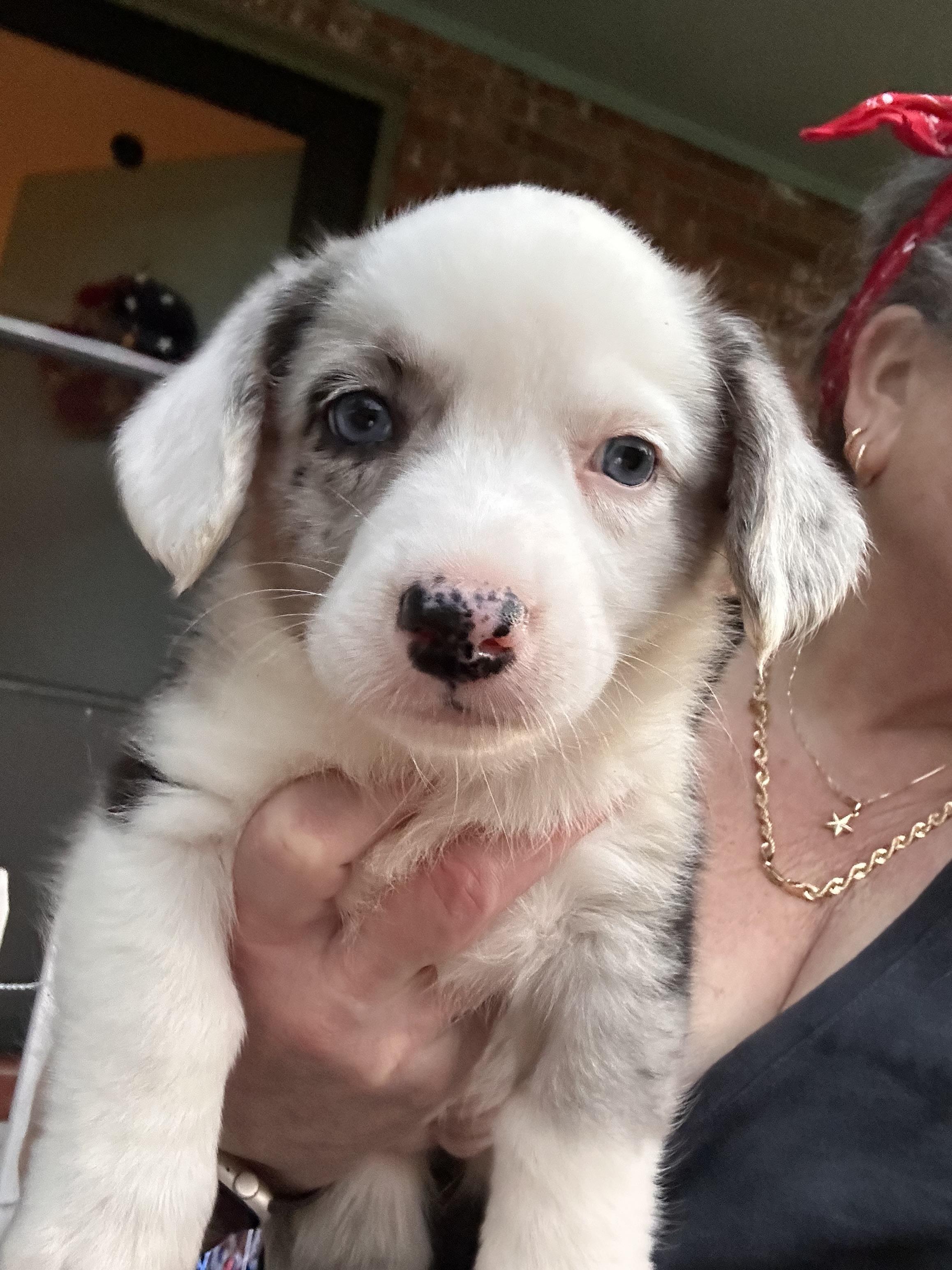 Our puppies include sable and white, brindle and white, red and white, blue merle and white, and black and white. Colors will vary depending on the parent dogs.