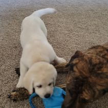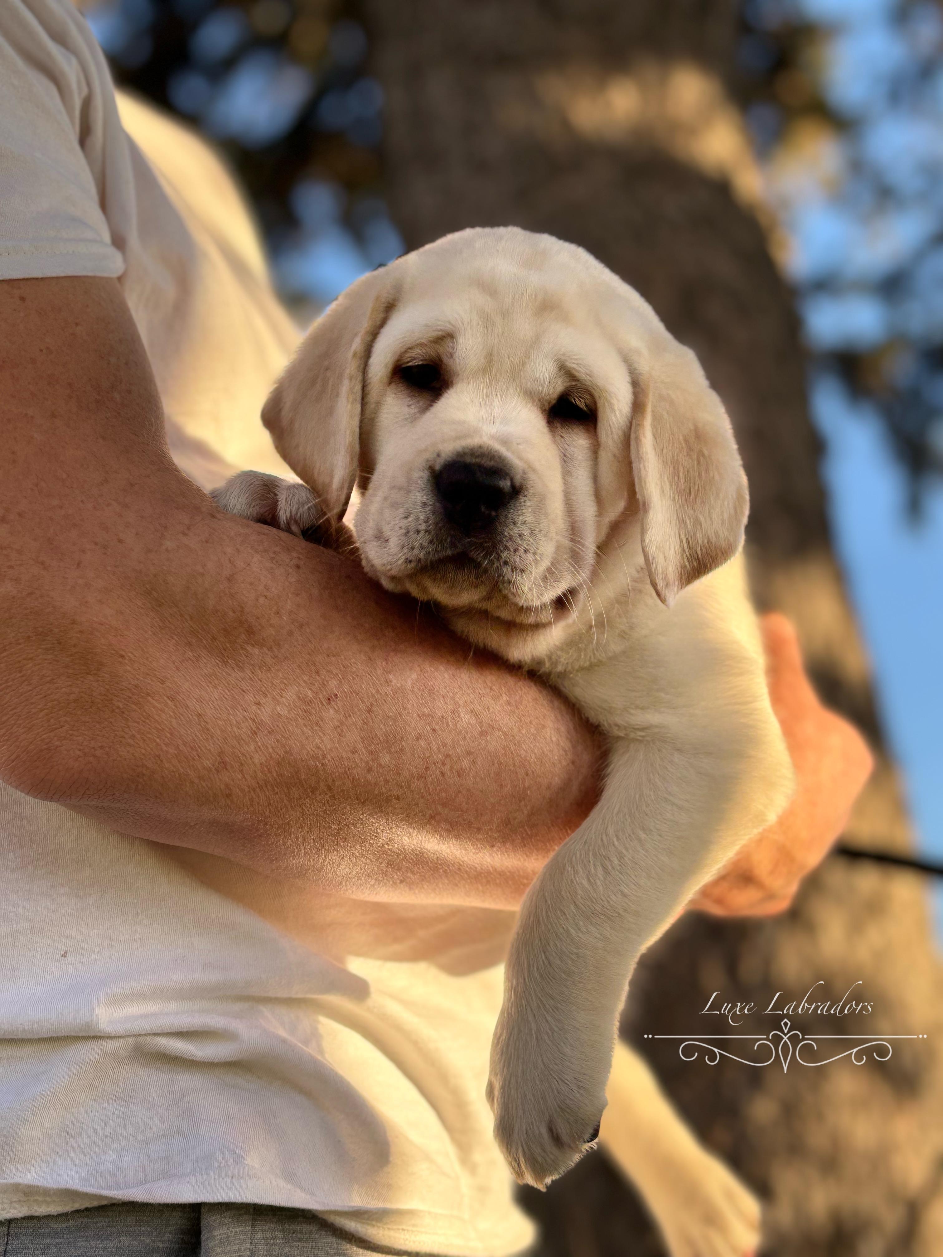 We are overly pleased with Luxe Labradors from the beginning! Their service is outstanding and a very high care standard with their puppies! Our puppy is darling and such a good boy on day two already! Thank you Kristine!