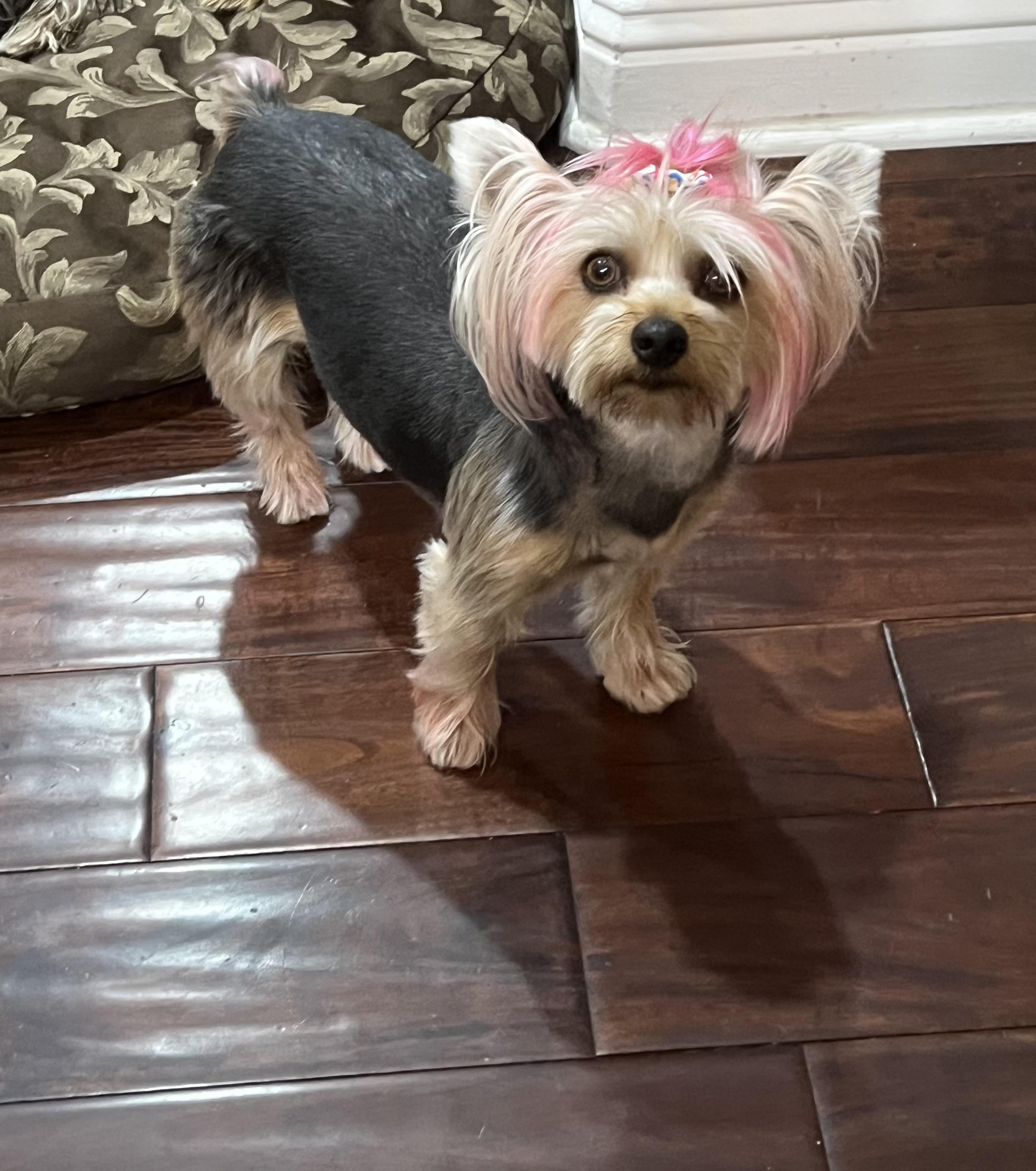 Cookie is a female Yorkshire Terrier. Carefully selected as a great representative of her breed, Rayshawn decided to make her part of their program. Rayshawn has passed Good Dog’s screening process, which involved a review of their breeding practices, environment, and the mental and physical health of their dogs.